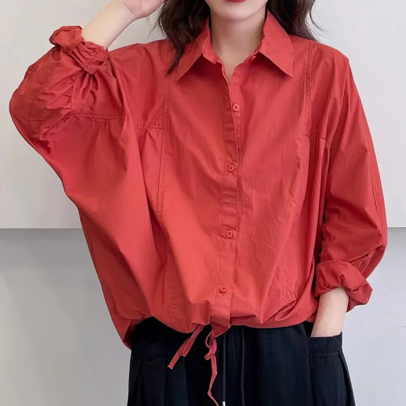 衣都精品- 2023新款復古文藝寬鬆大碼純色上衣