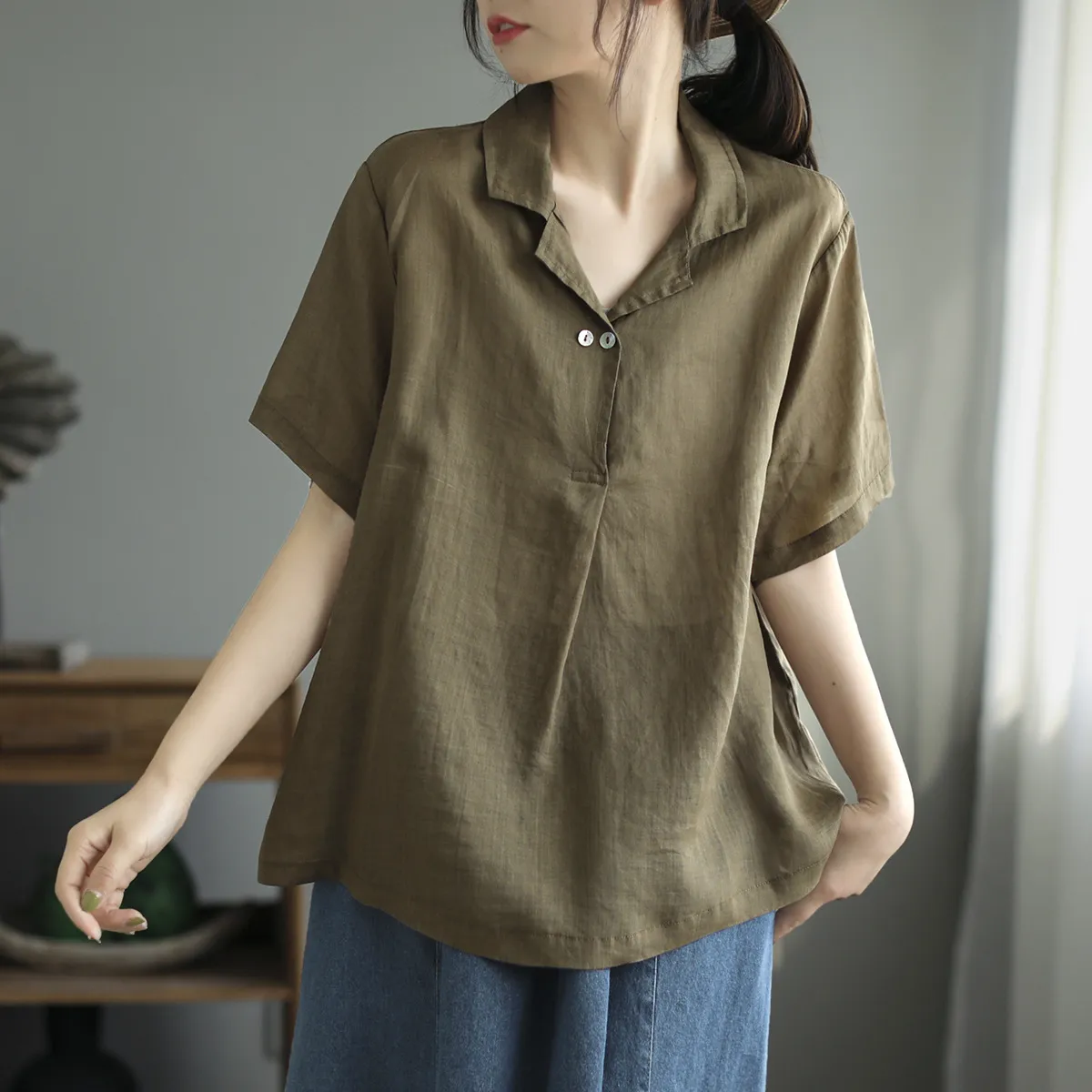 衣都精品- 2023新款寬鬆大碼文藝套頭五分袖上衣