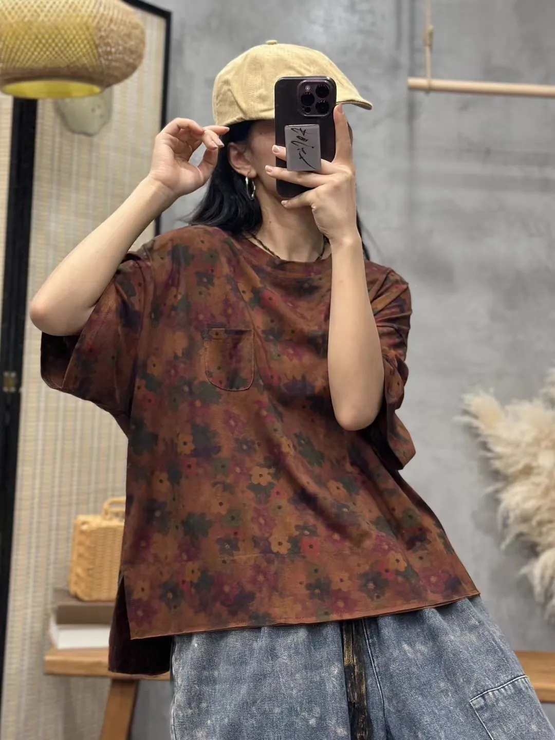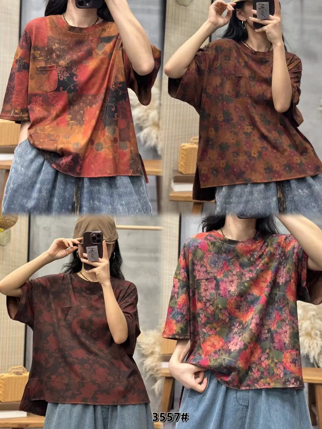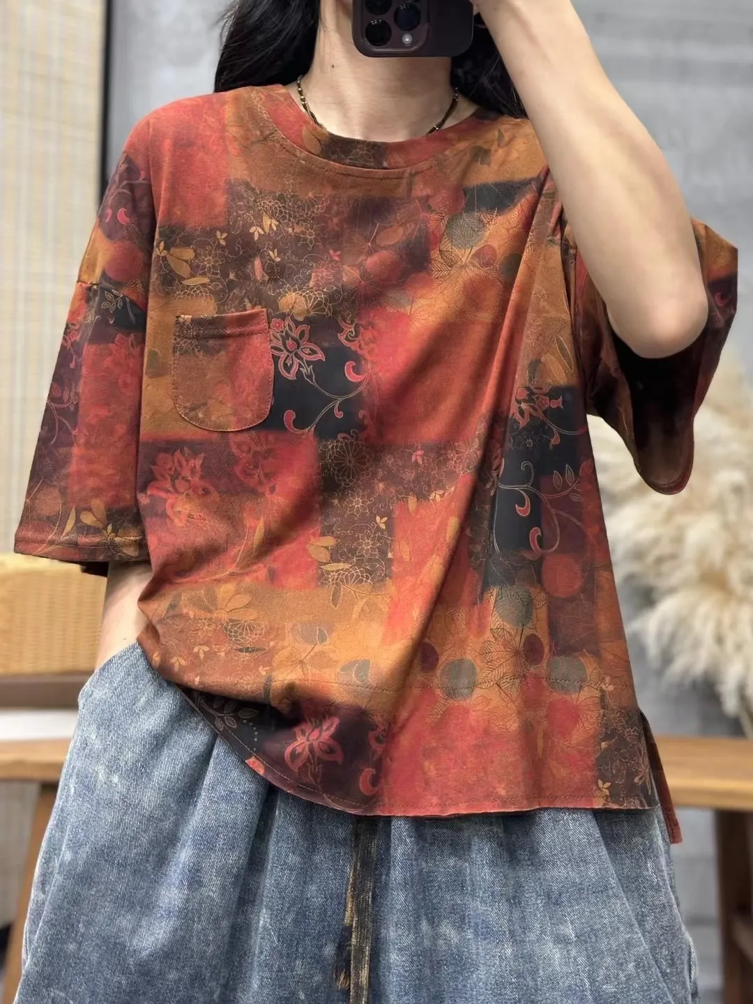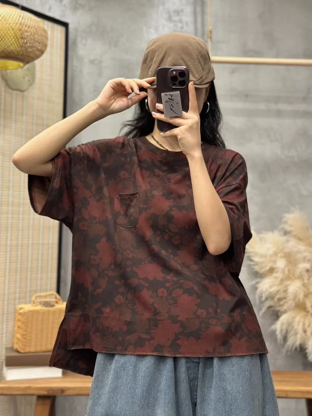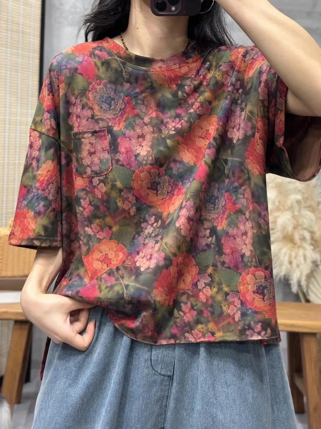 衣都精品- 2023新款文藝百搭寬鬆印花短袖上衣
