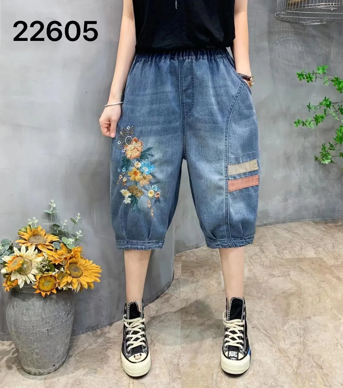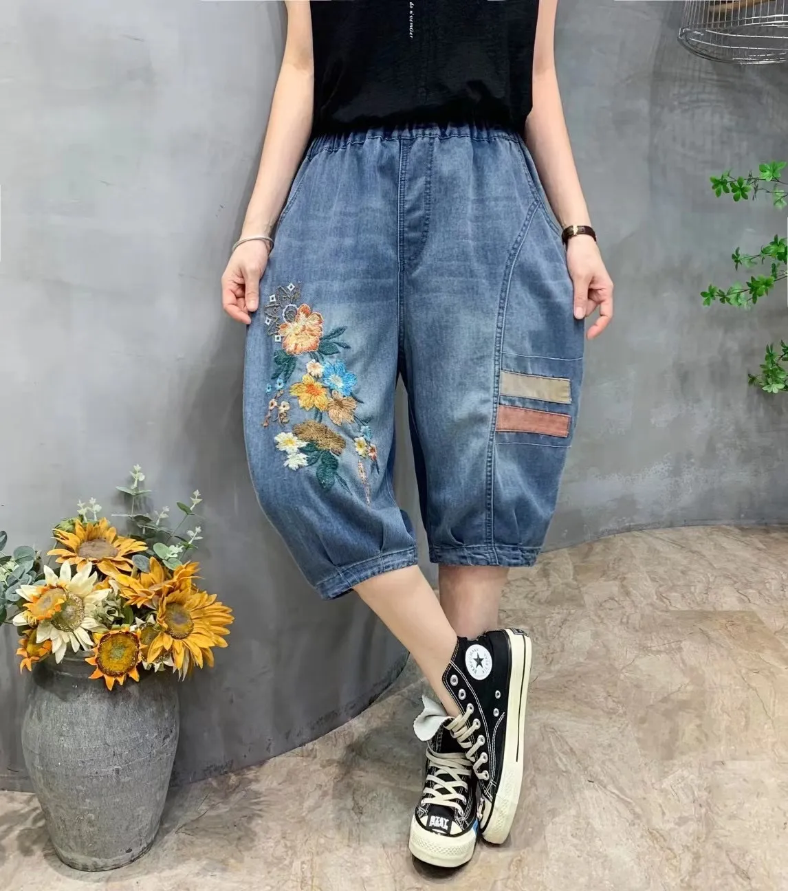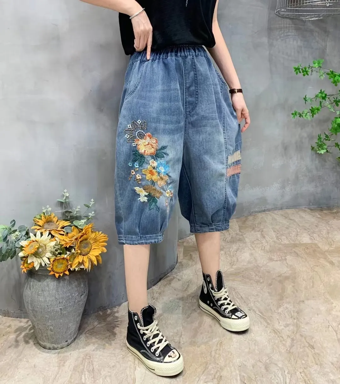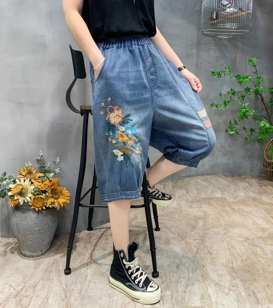 衣都精品- 2023新款復古民族風繡花牛仔短褲