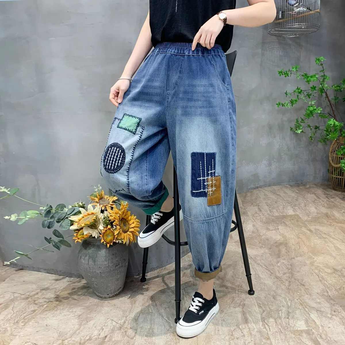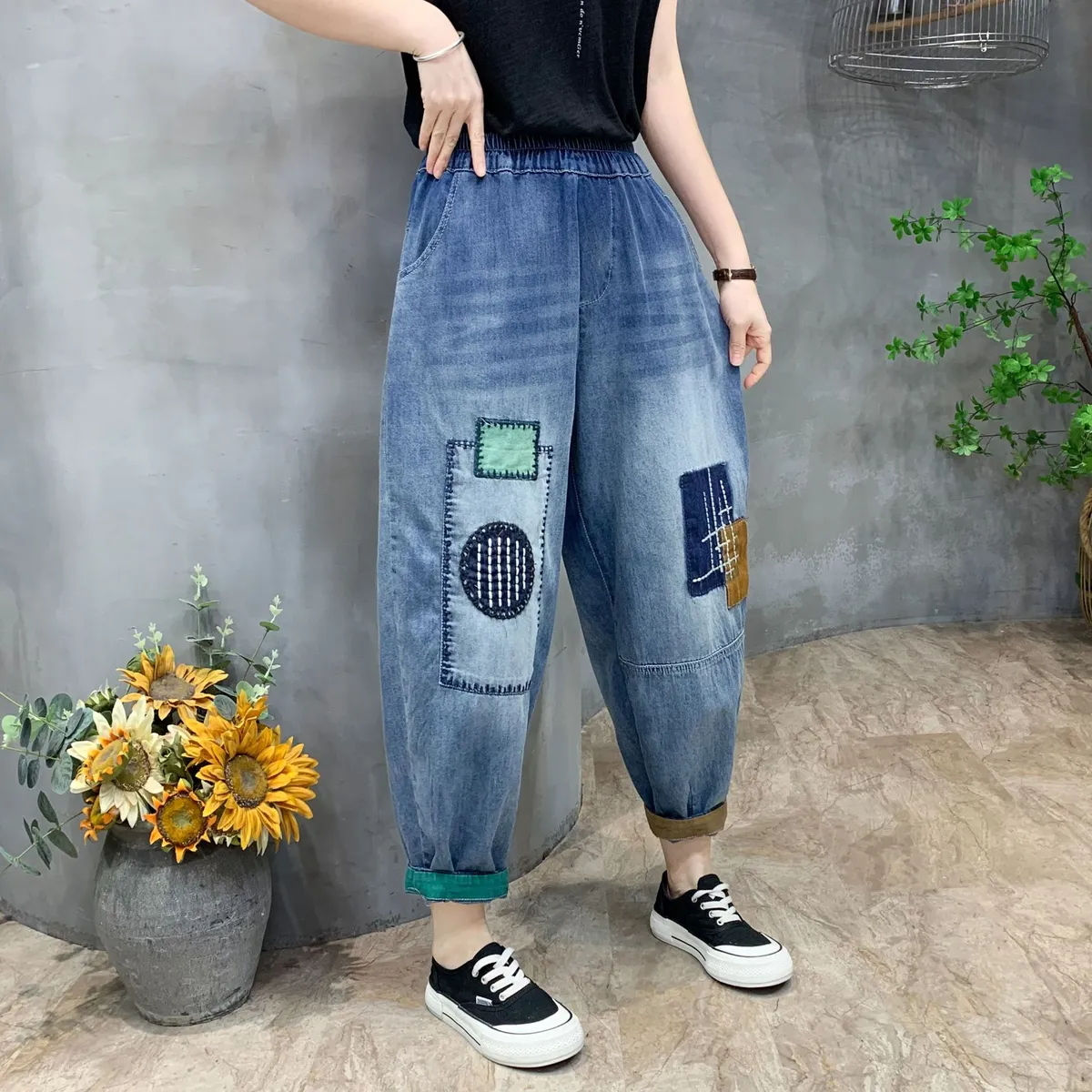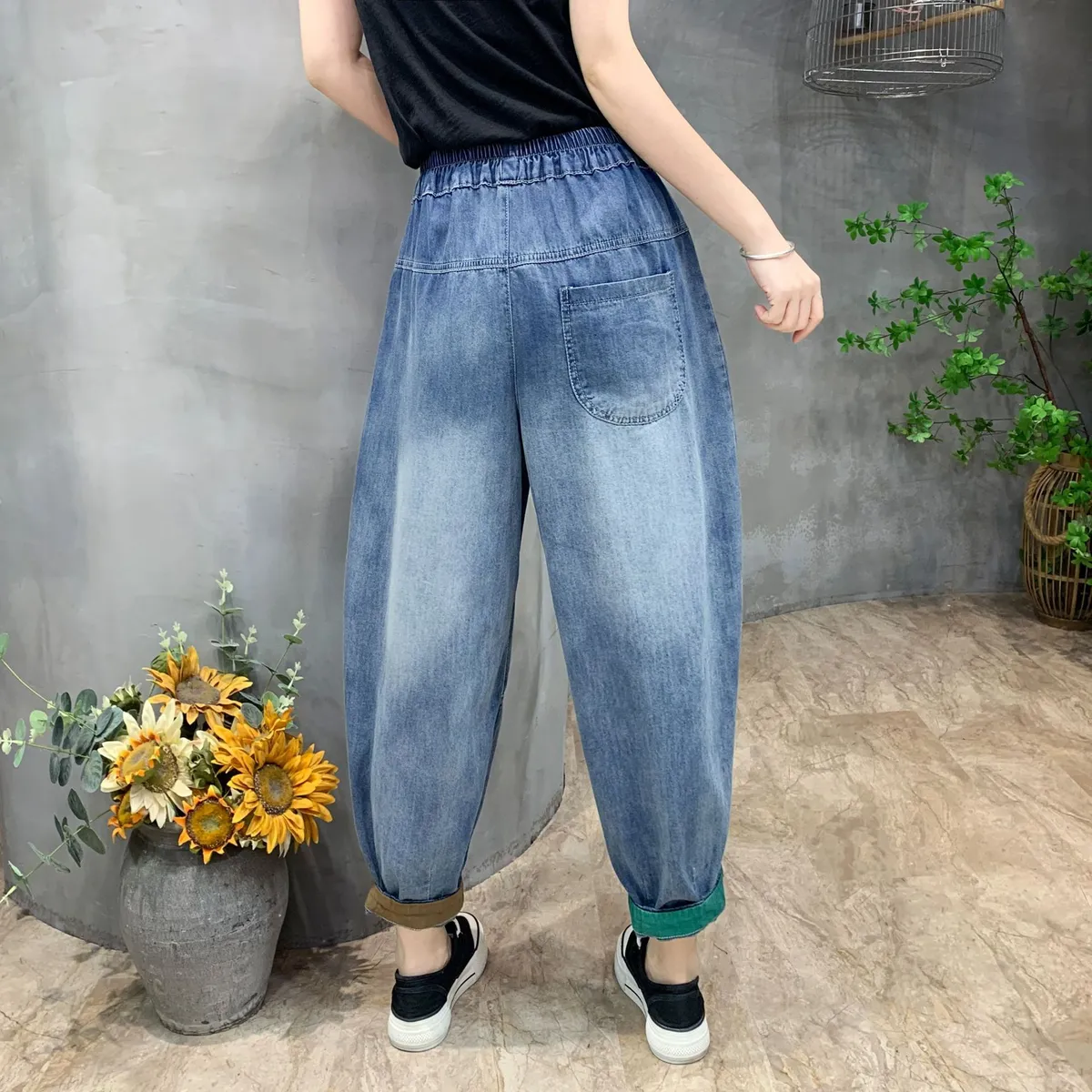 衣都精品- 2023新款復古文藝風鬆緊腰七分牛仔褲