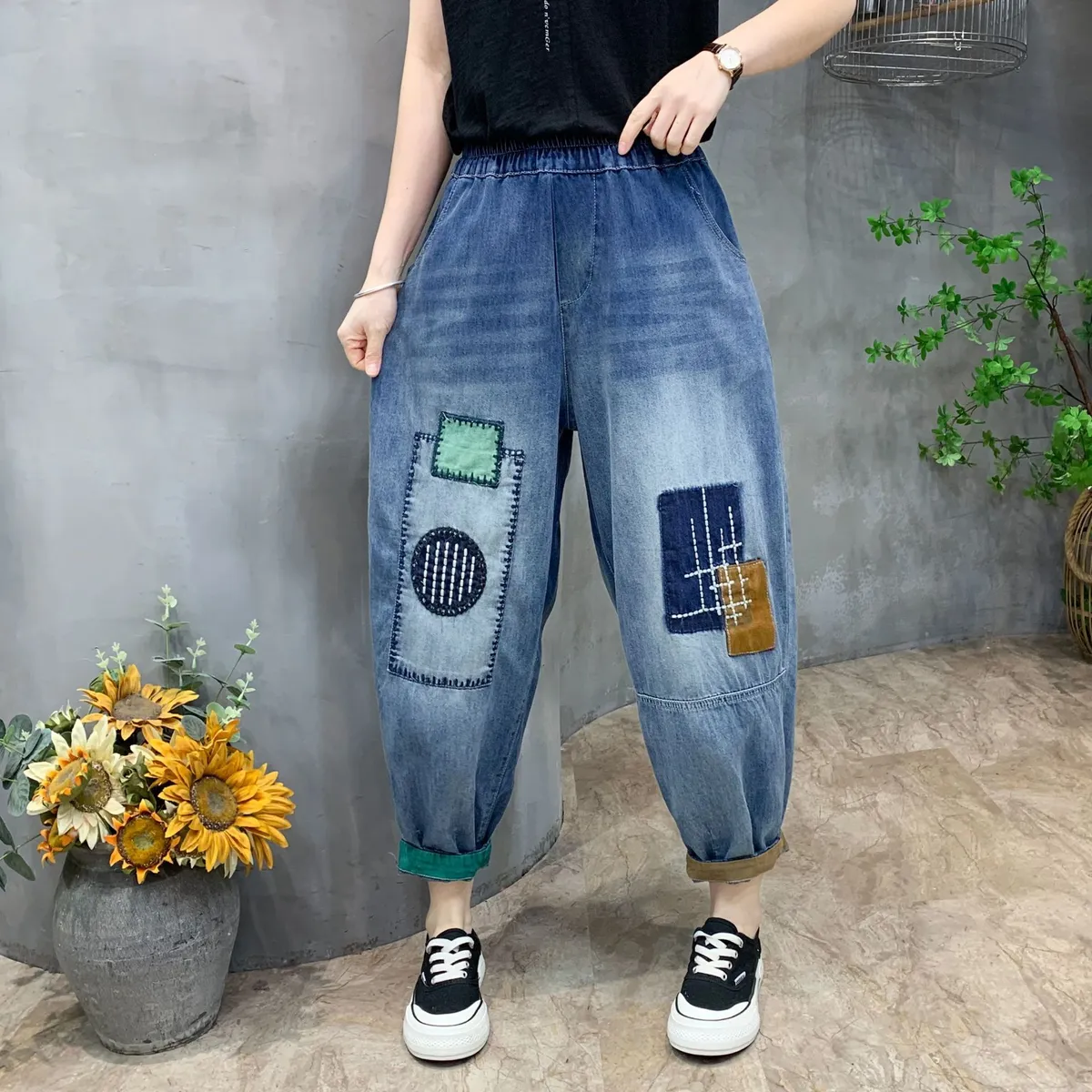 衣都精品- 2023新款復古民族風簡約破洞鬆緊腰休閒褲