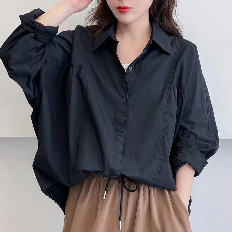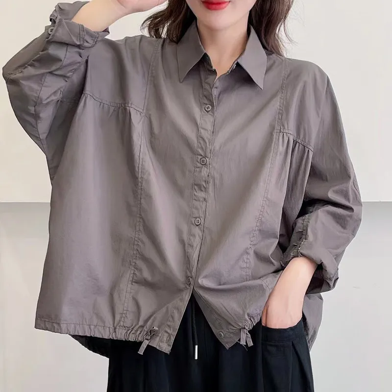 衣都精品- 2023新款寬鬆設計感洋氣抽繩上衣