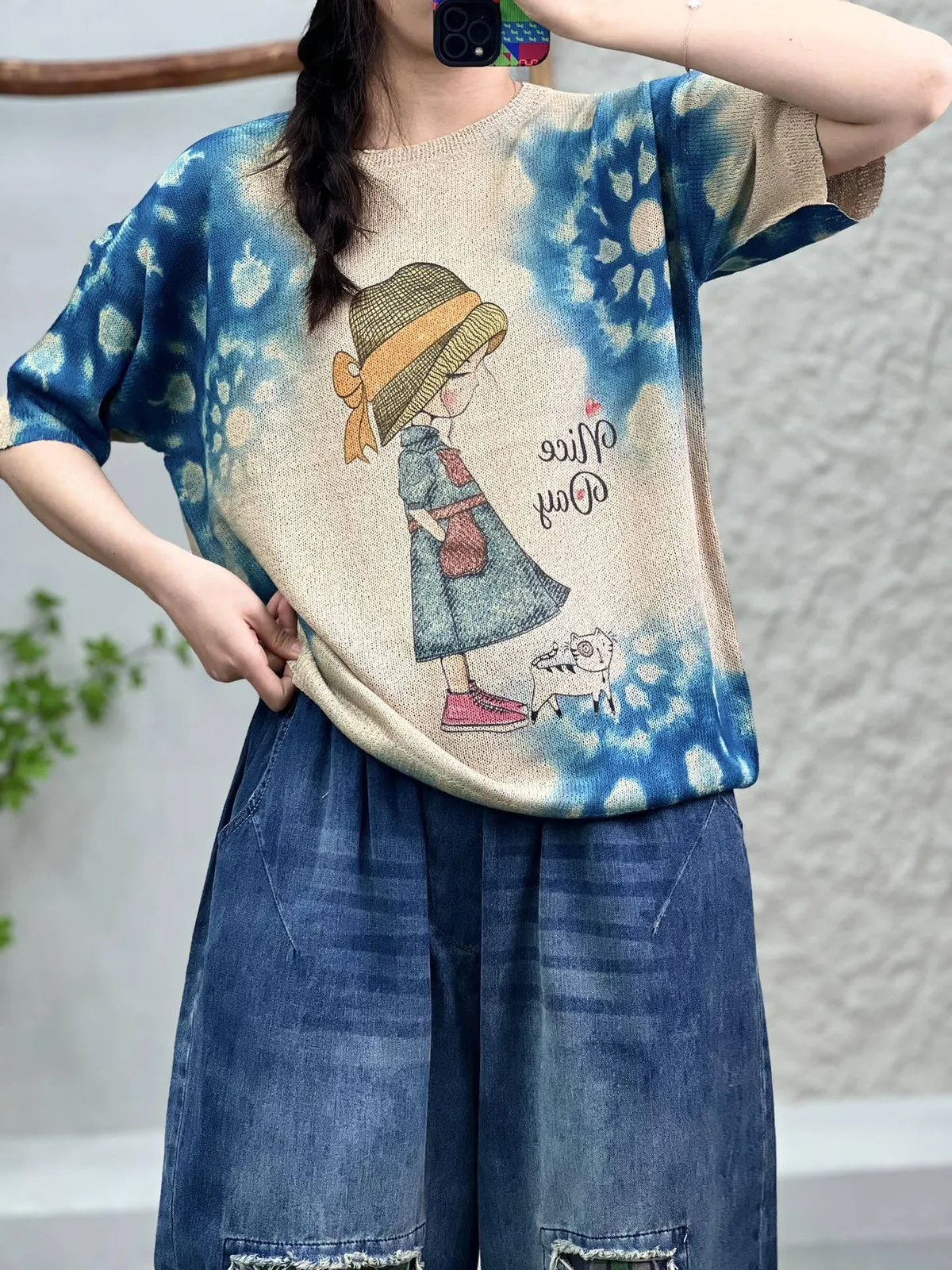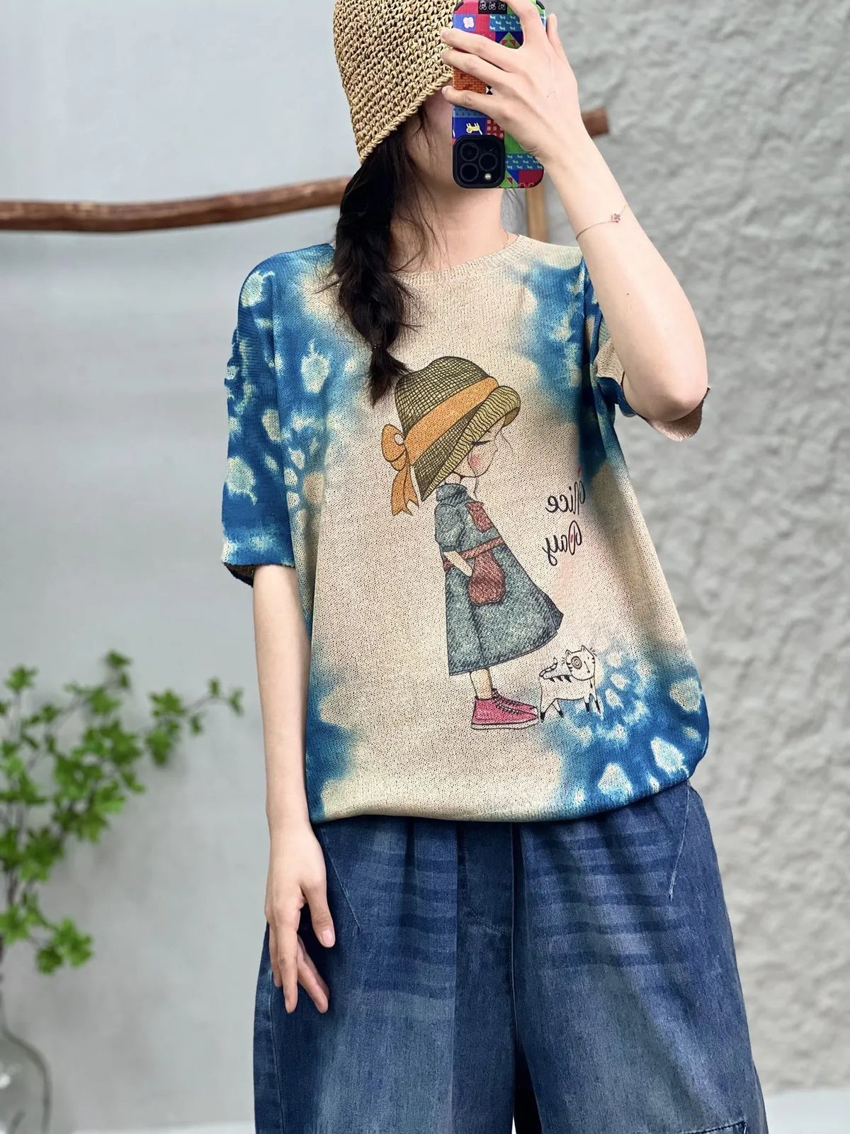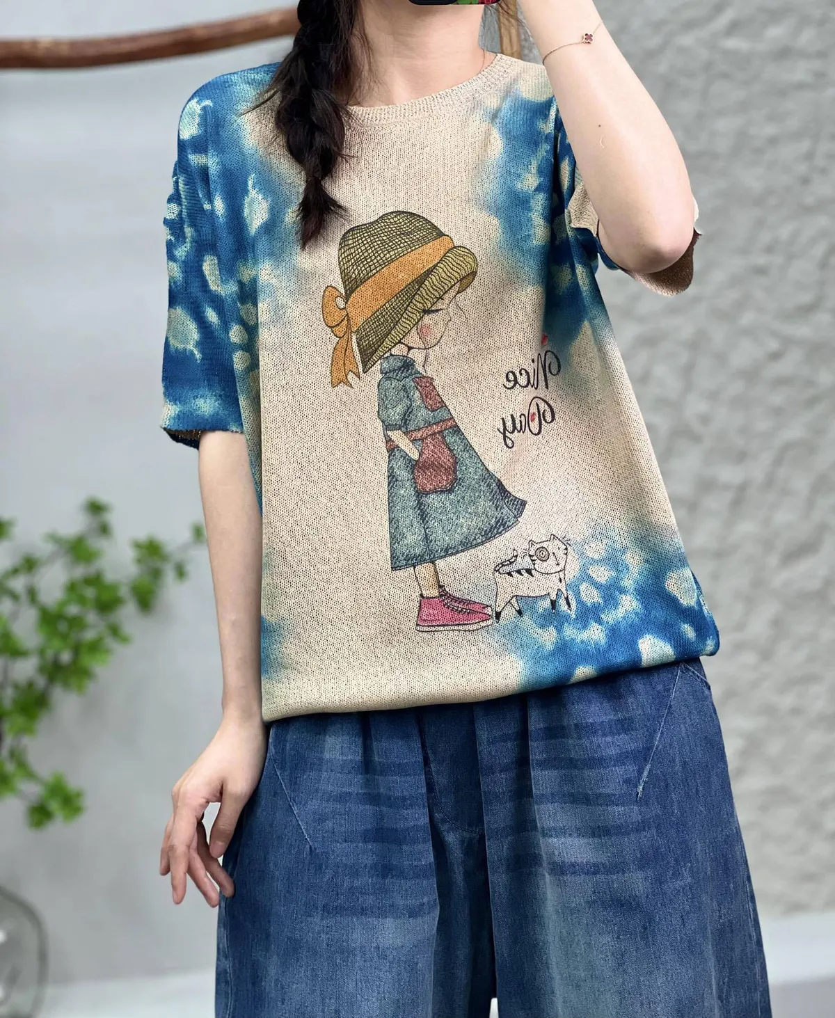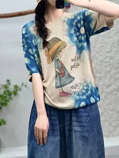 衣都精品- 2023新款少女與貓套頭圓領T恤上衣