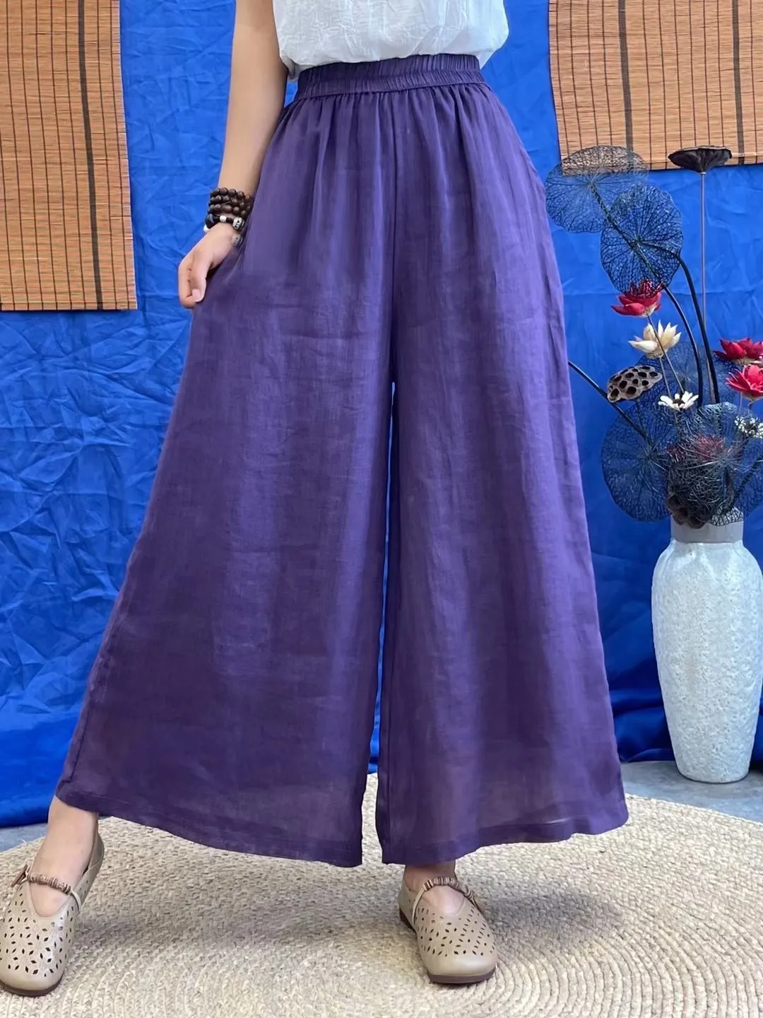 衣都精品- 2023新款薄款鬆緊腰雙層闊腿褲