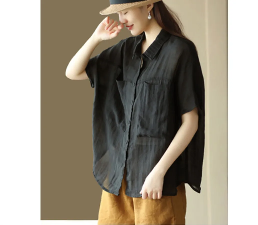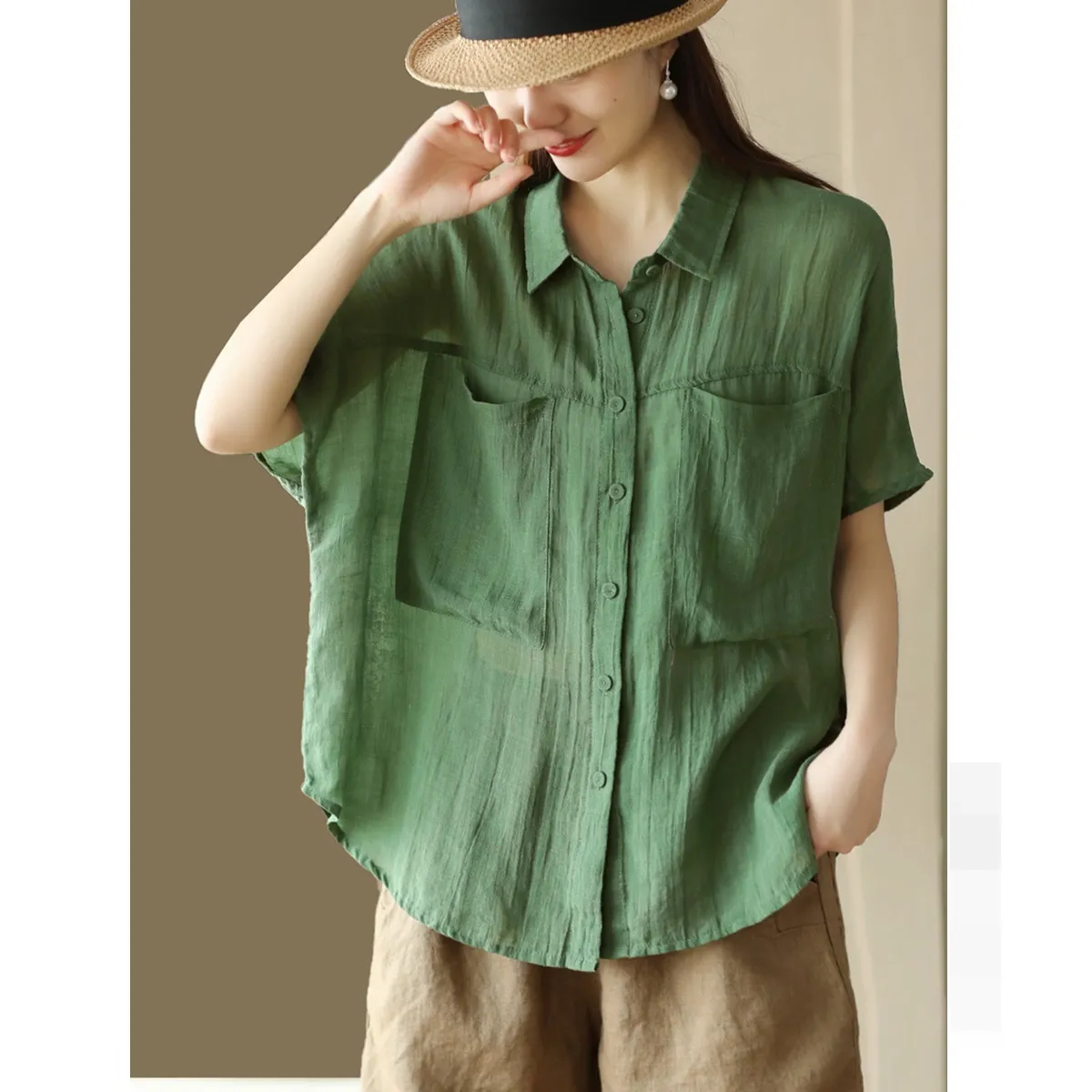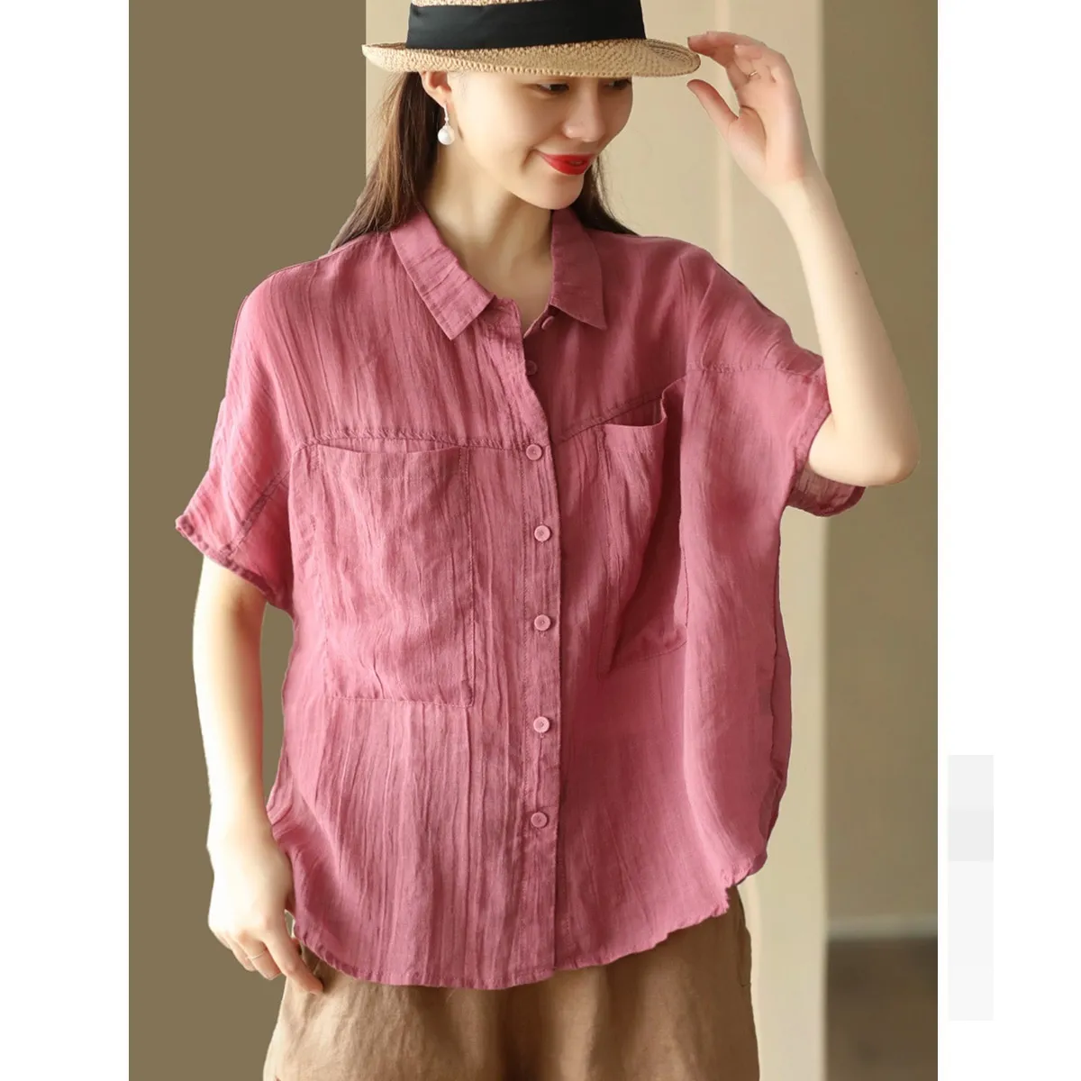 衣都精品- 2023新款復古寬鬆氣質翻領短袖上衣