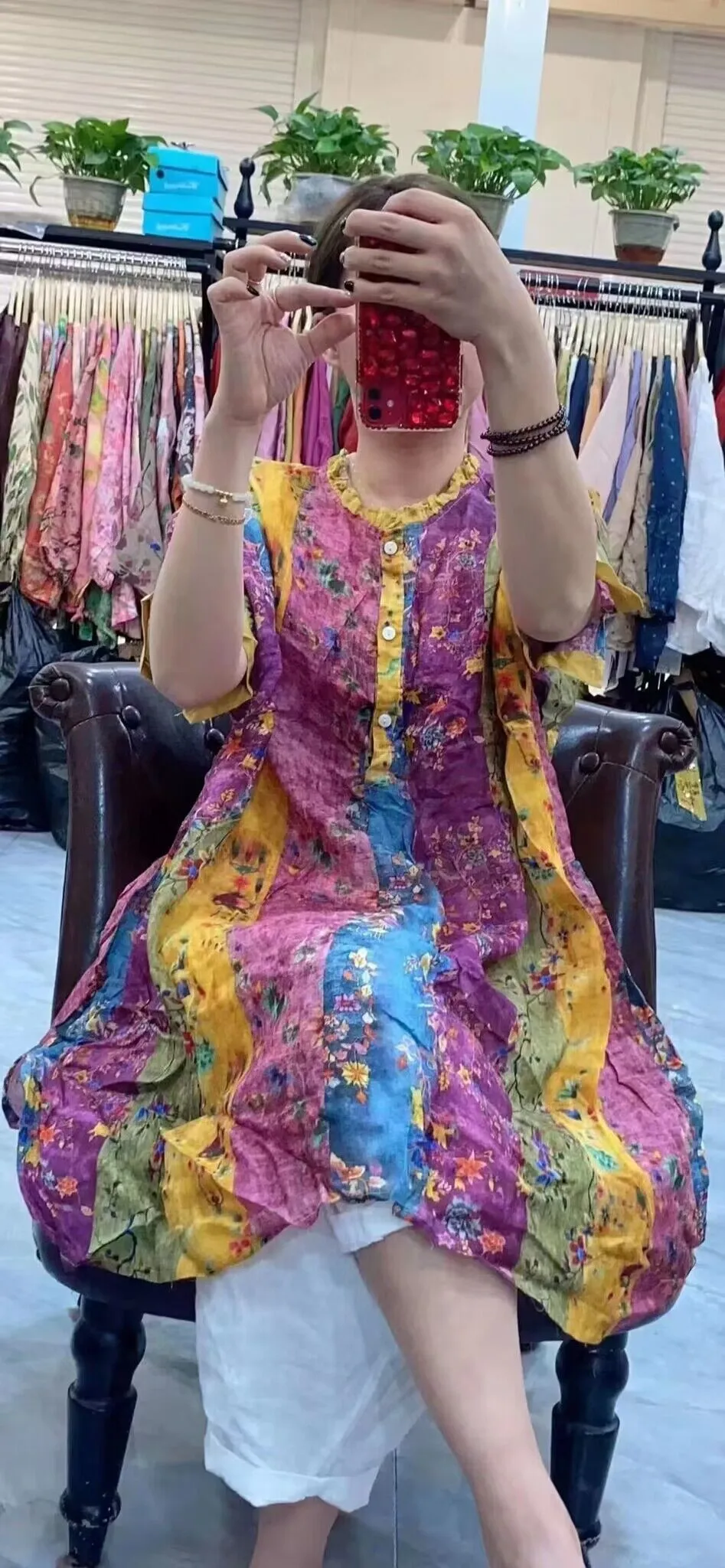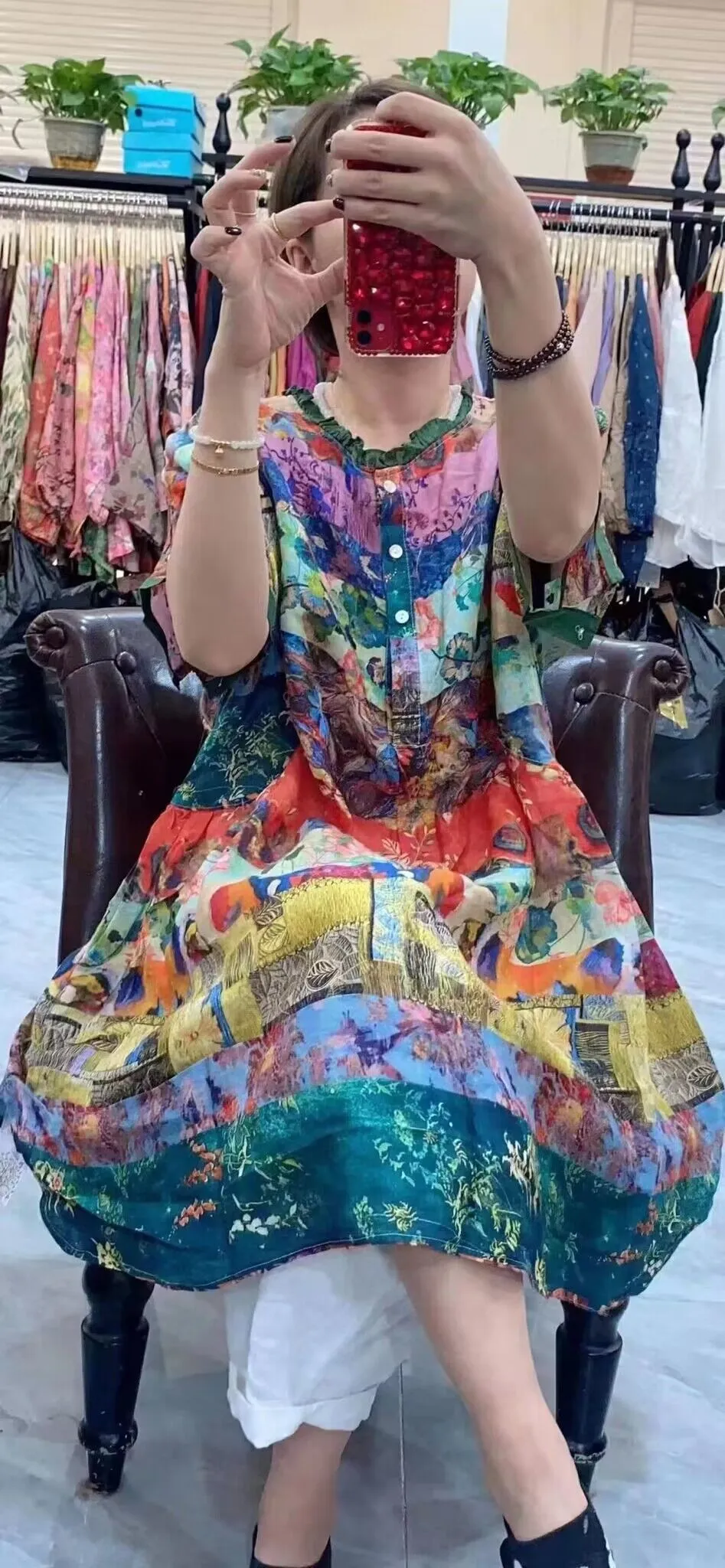 衣都精品- 2023新款寬鬆印花中長款連衣裙