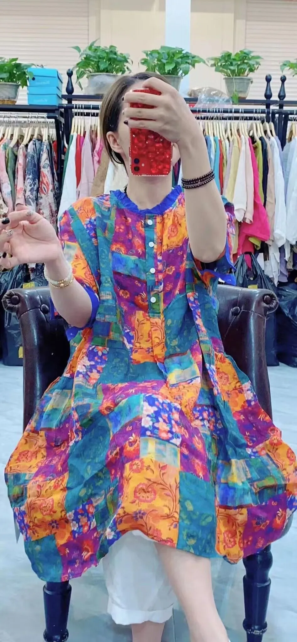 衣都精品- 2023新款寬鬆印花中長款連衣裙