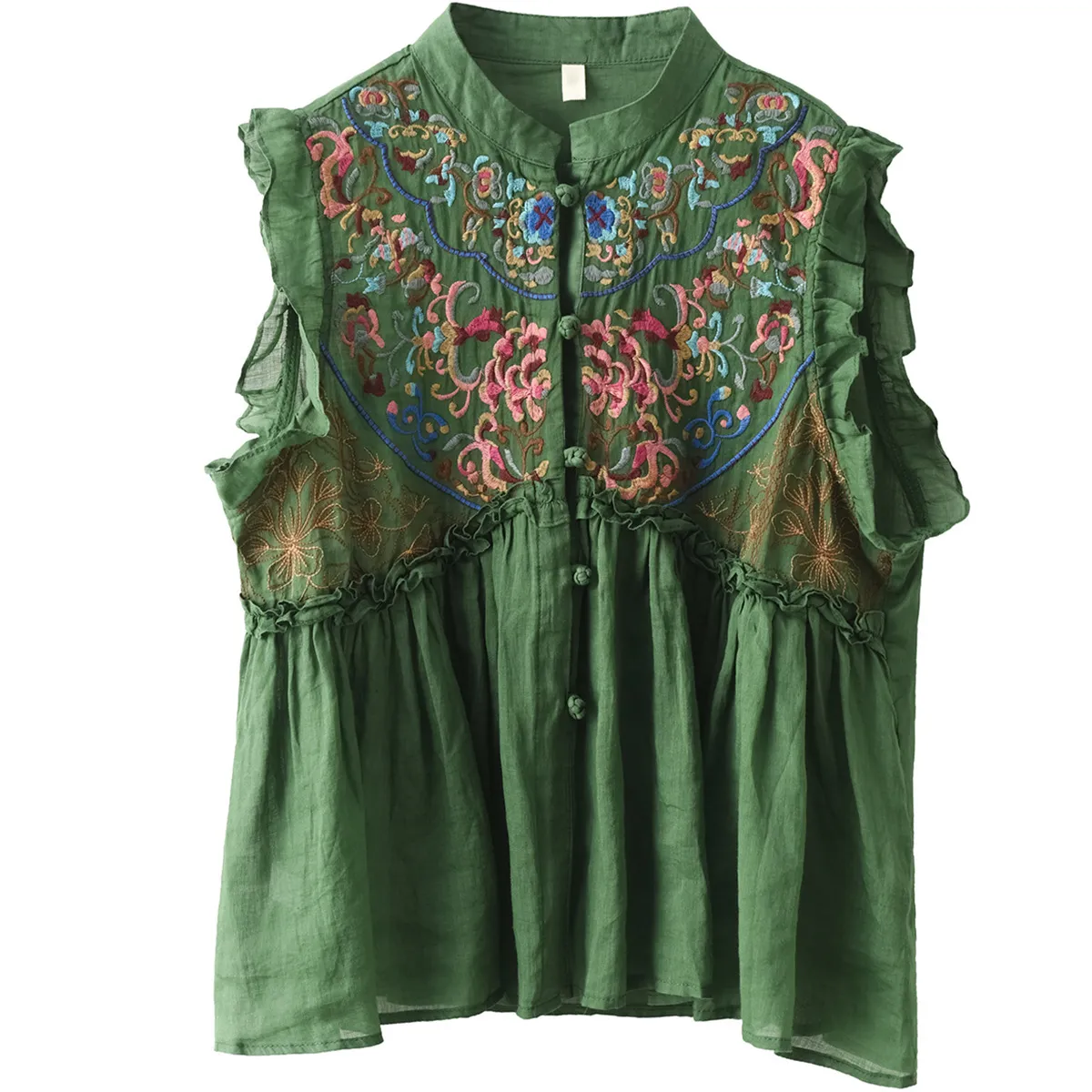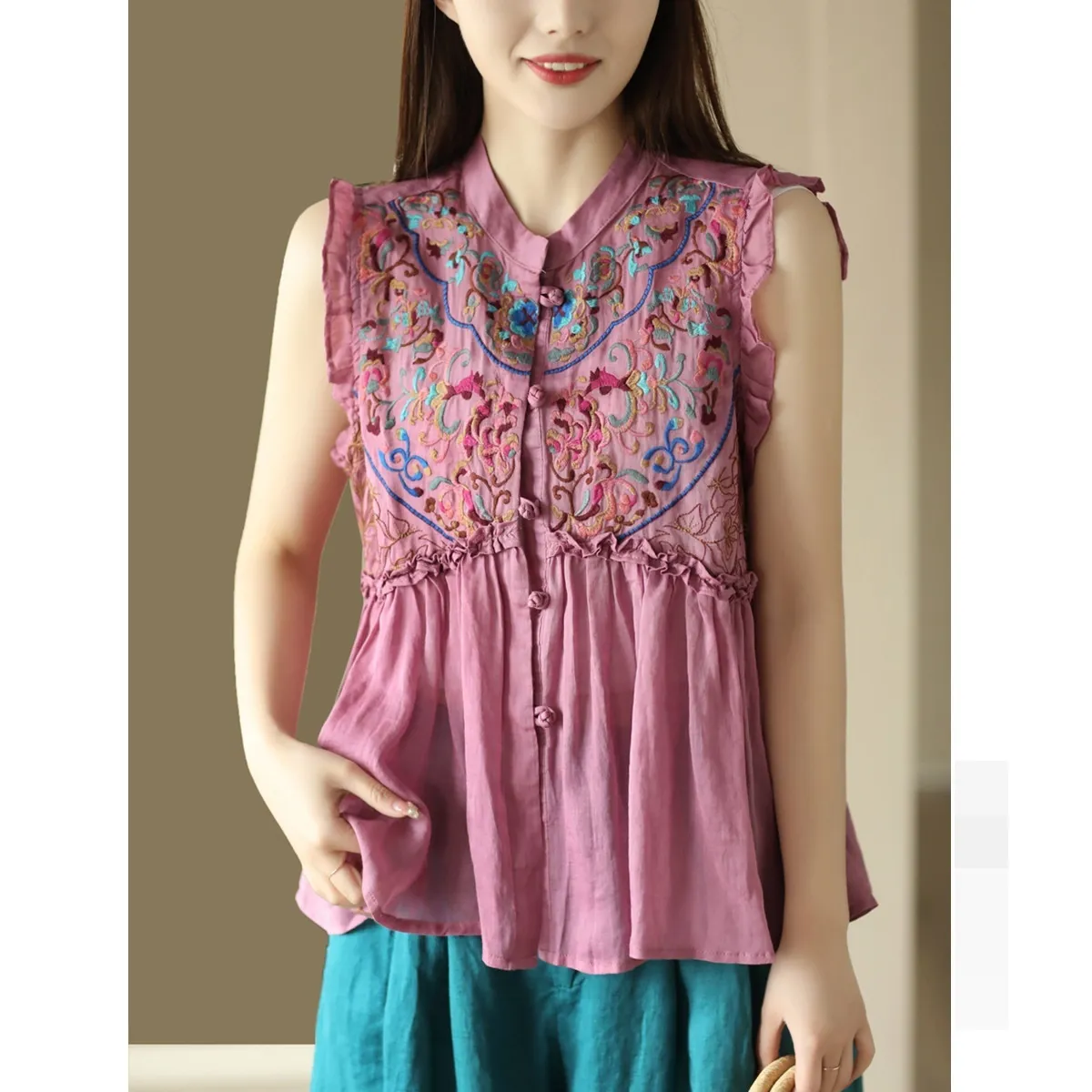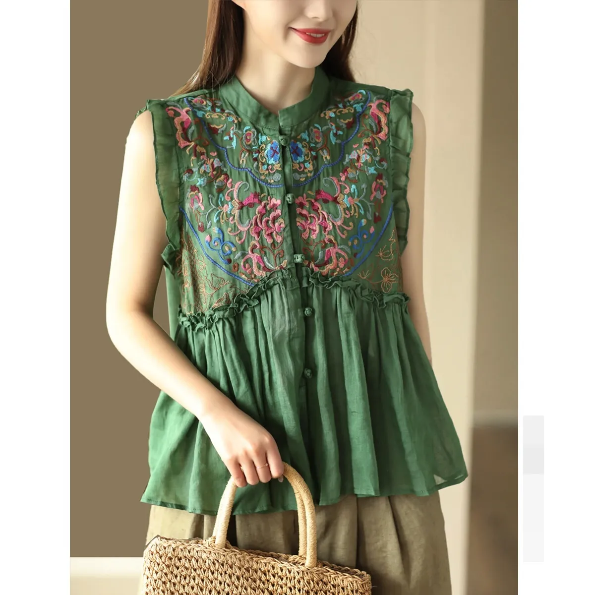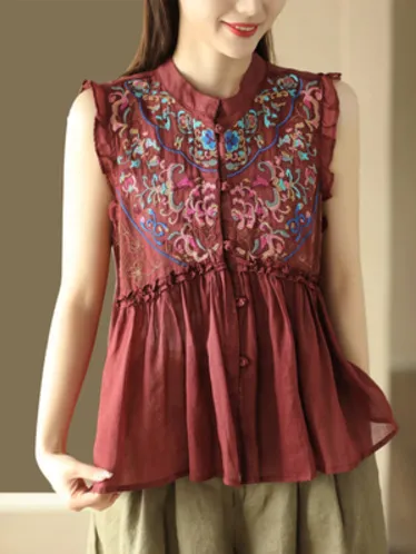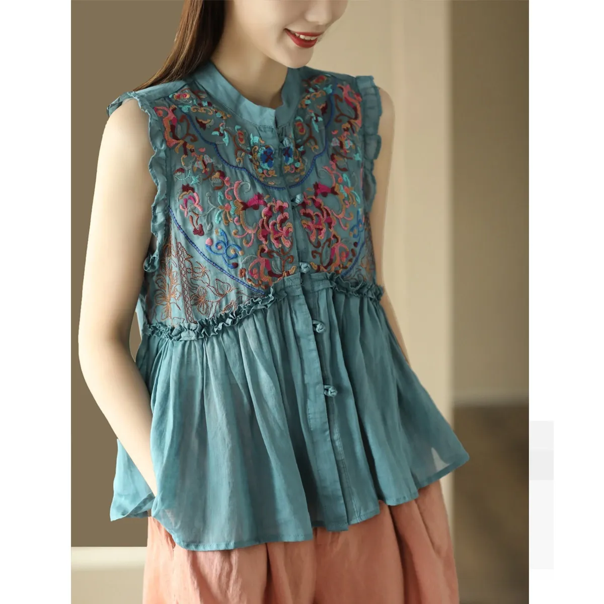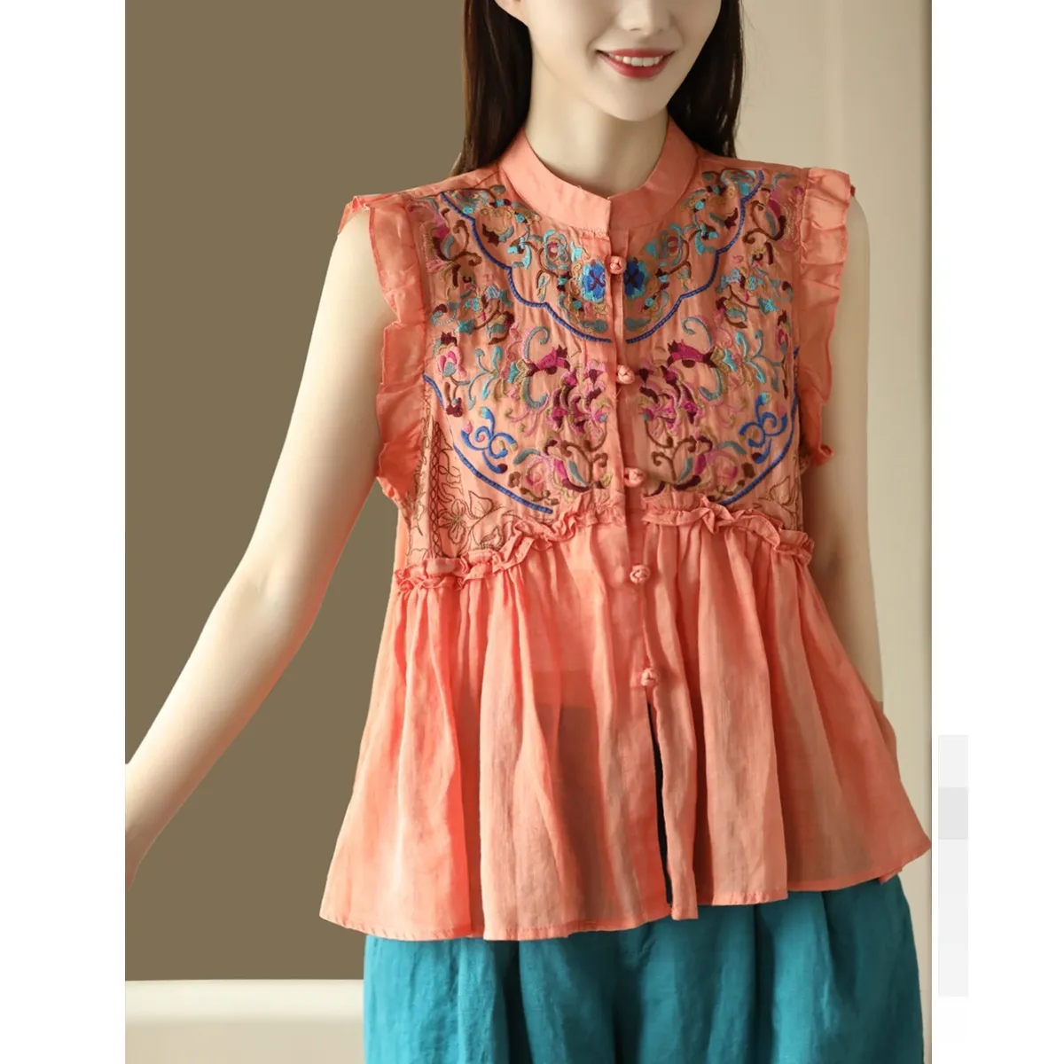 衣都精品- 2023新款復古重工立體刺繡文藝盤扣上衣