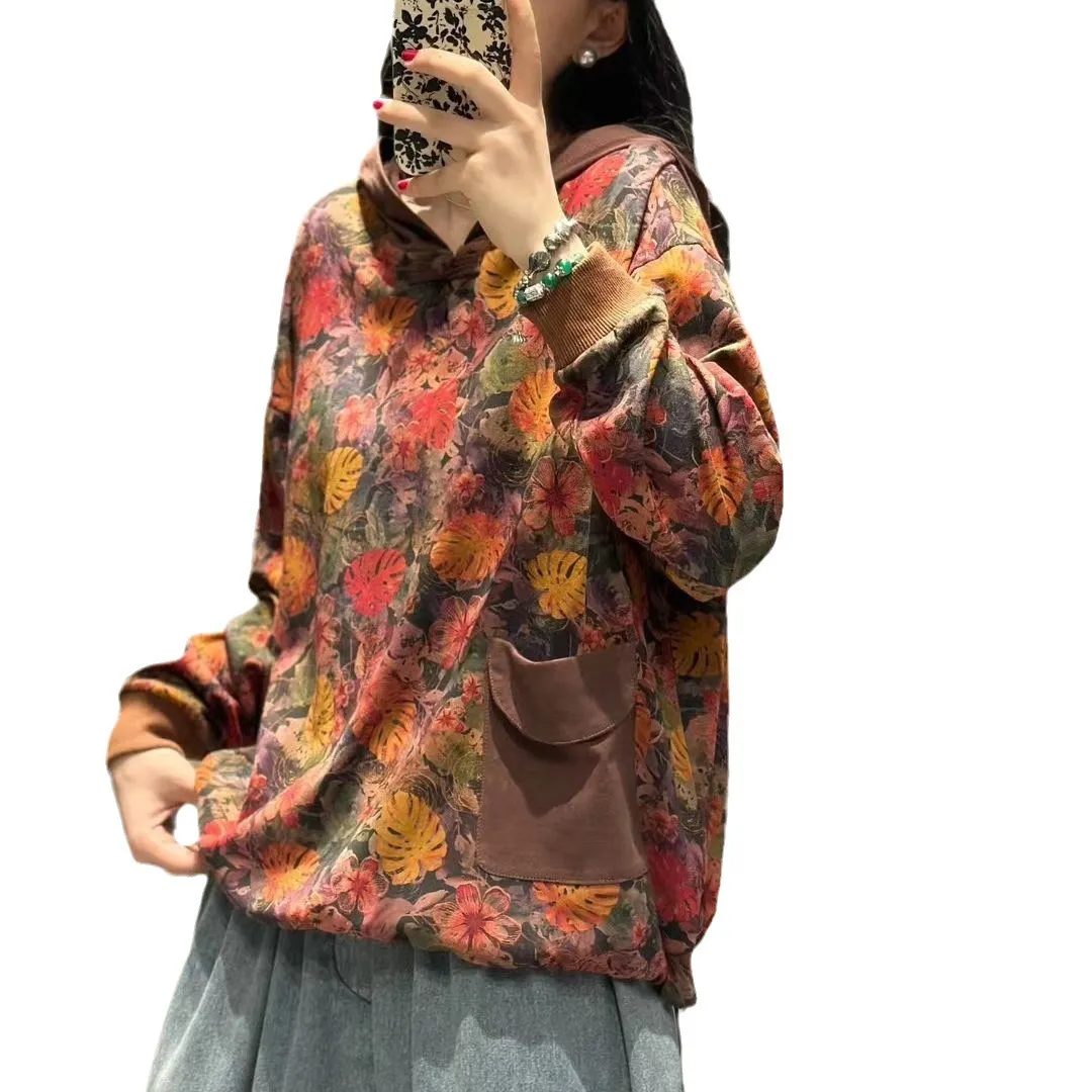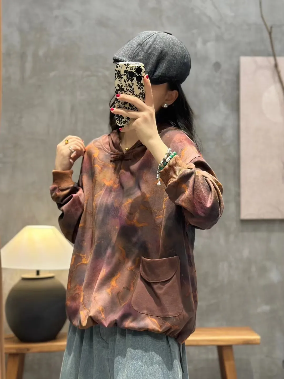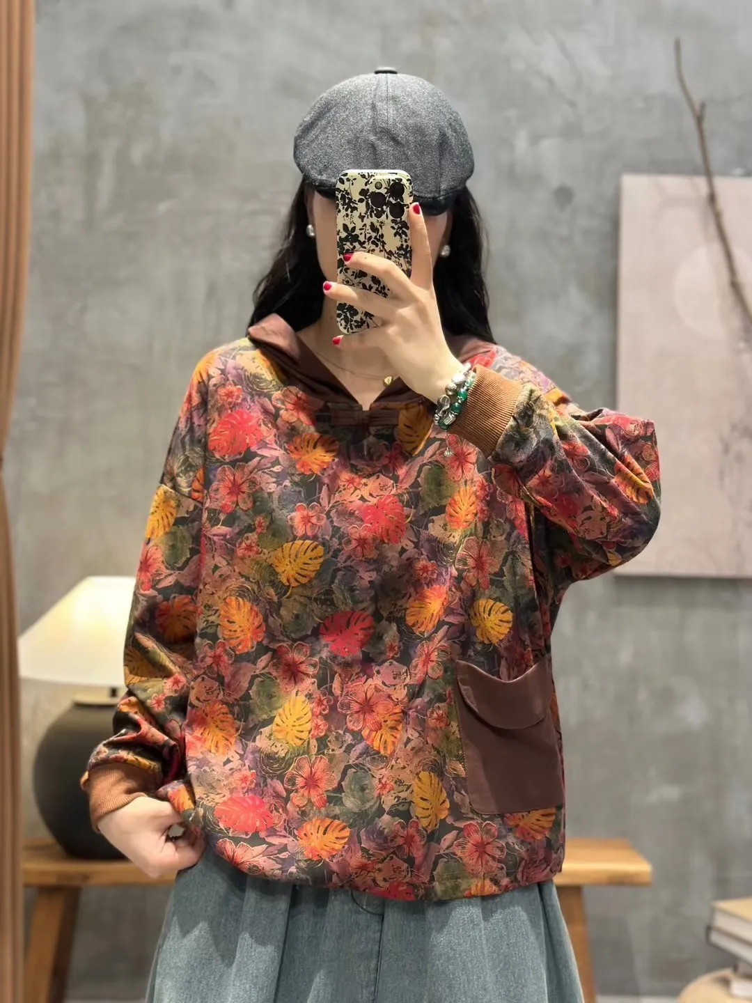 衣都精品- 2023新款文藝風連帽盤扣寬鬆長袖上衣