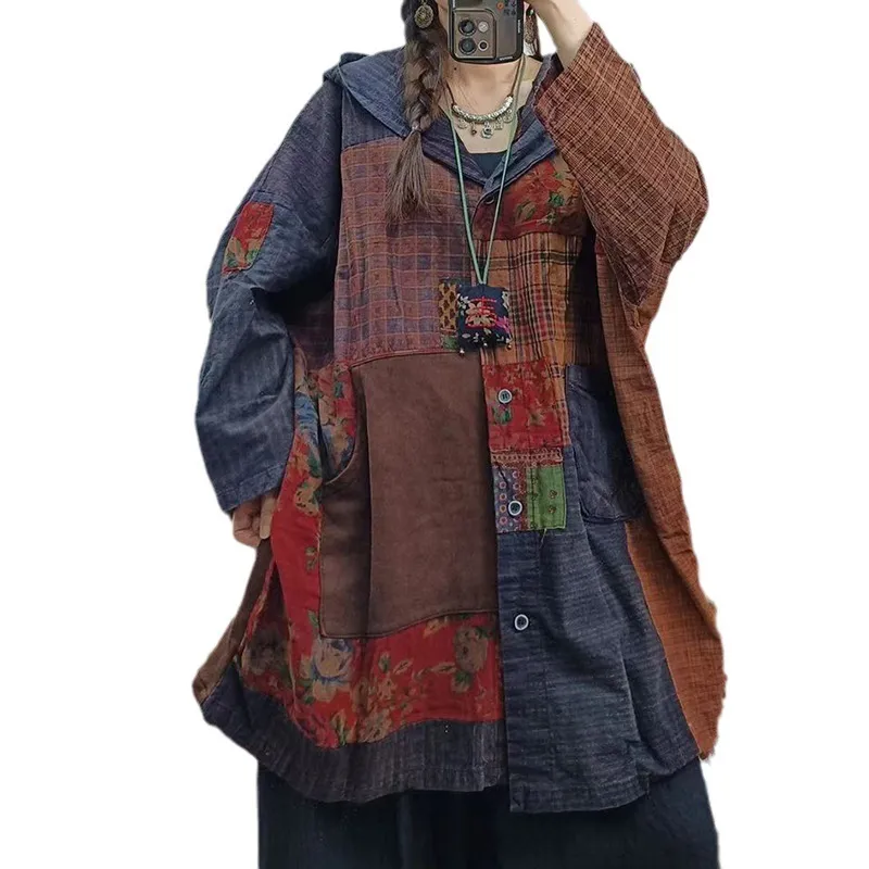 衣都精品- 2023新款寬鬆休閒連帽單排扣長袖外套