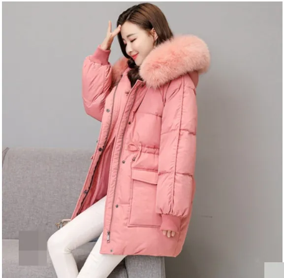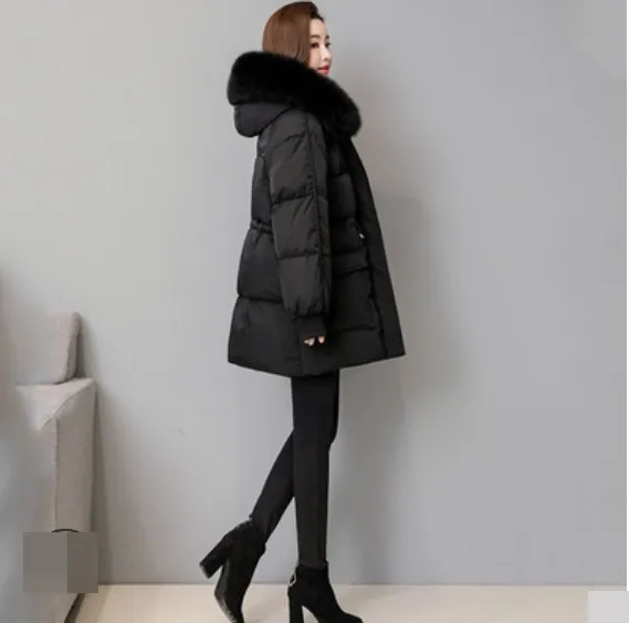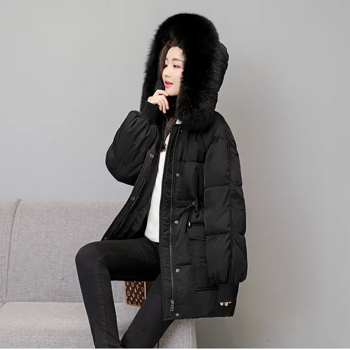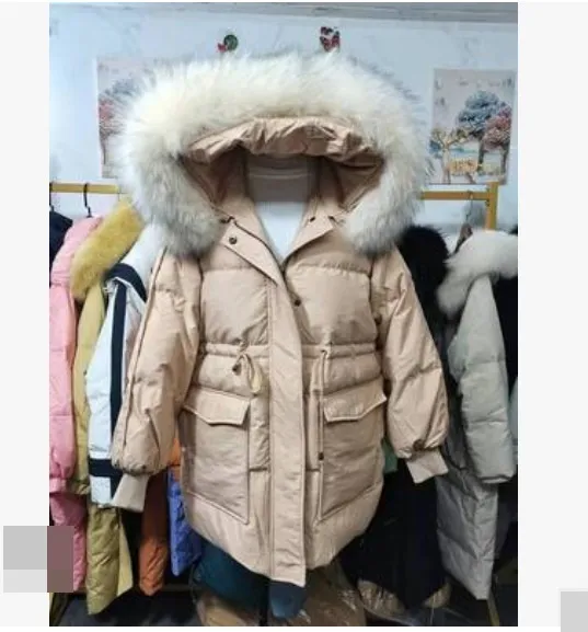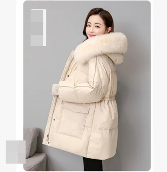 衣都精品- 2023新款韓版收腰中長款大毛領羽絨外套