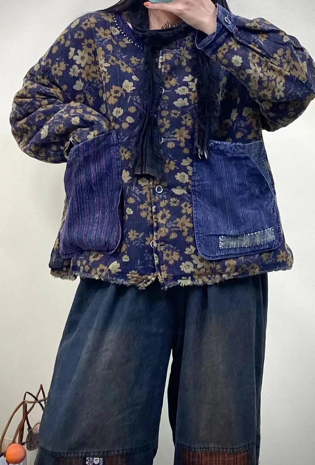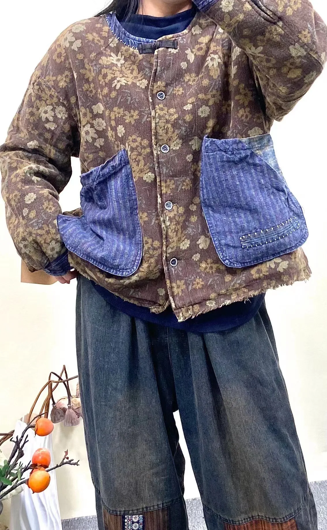 衣都精品- 2023新款復古小眾拼接老布砂洗盤扣外套