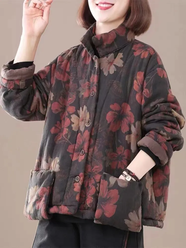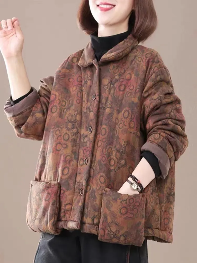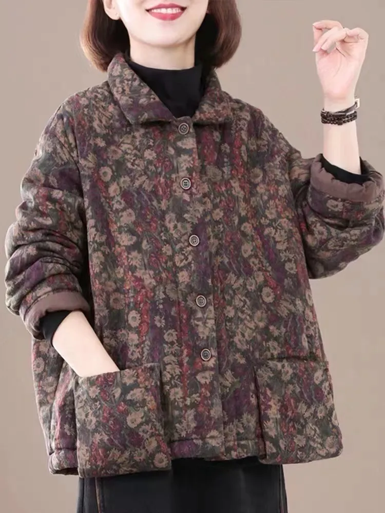 衣都精品- 2023新款復古碎花加厚寬鬆洋氣印花外套