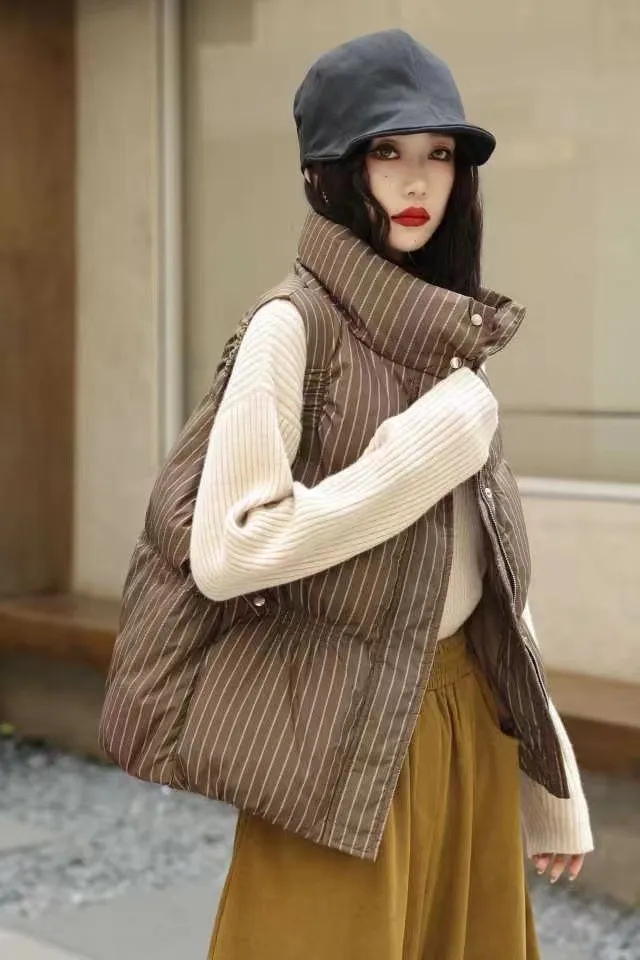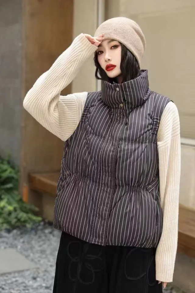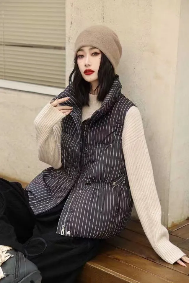 衣都精品- 2023新款條紋白鴨絨加厚立領羽絨服外套