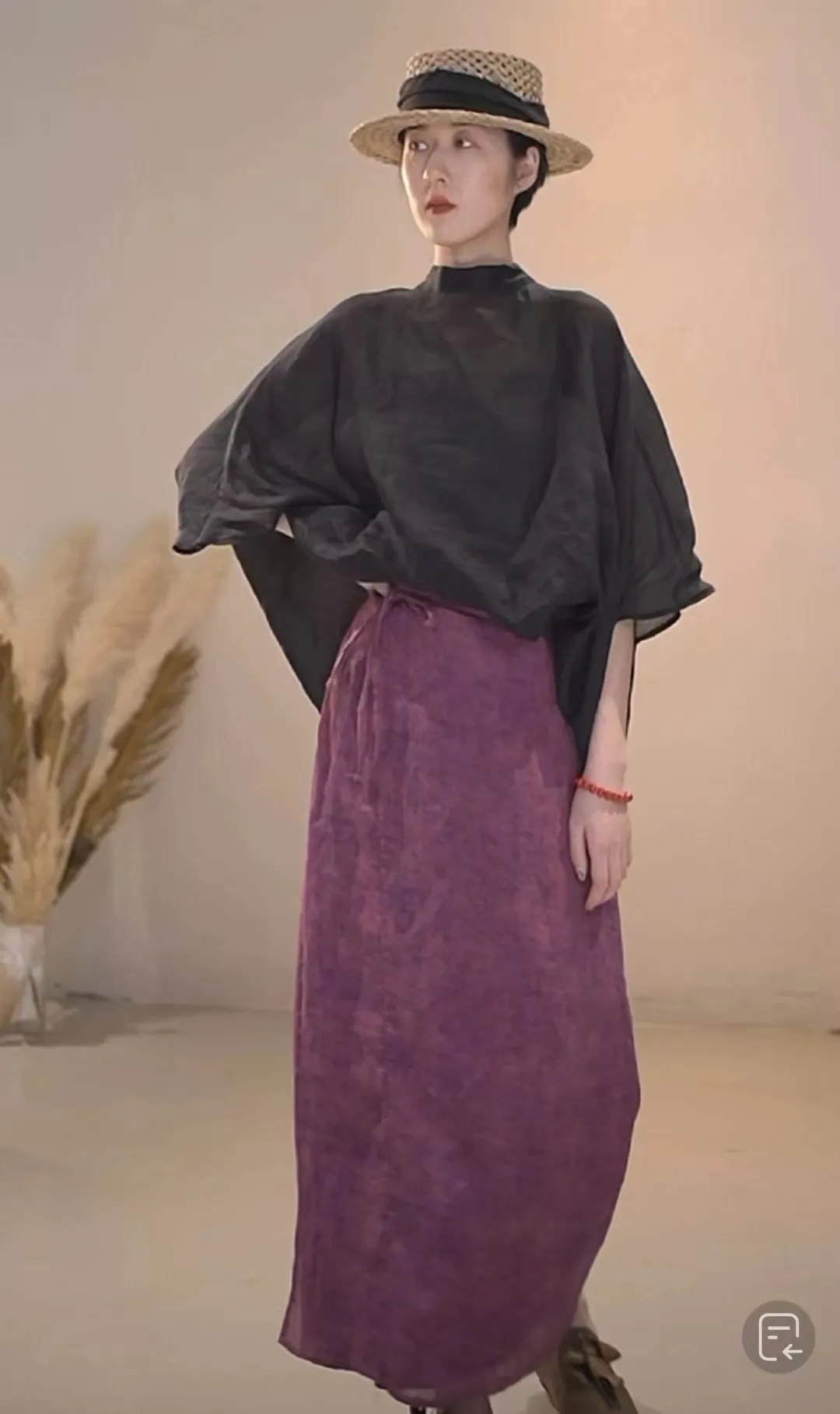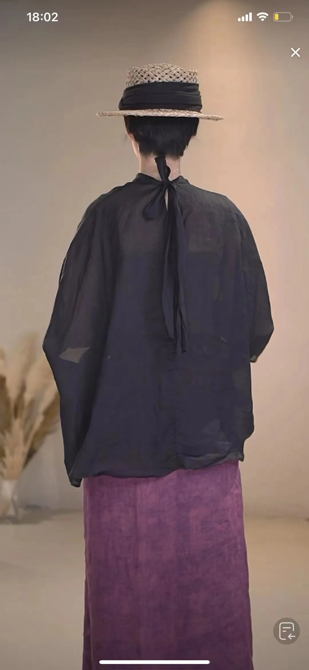 衣都精品- 新款輕薄苧麻繫帶寬鬆休閒上衣