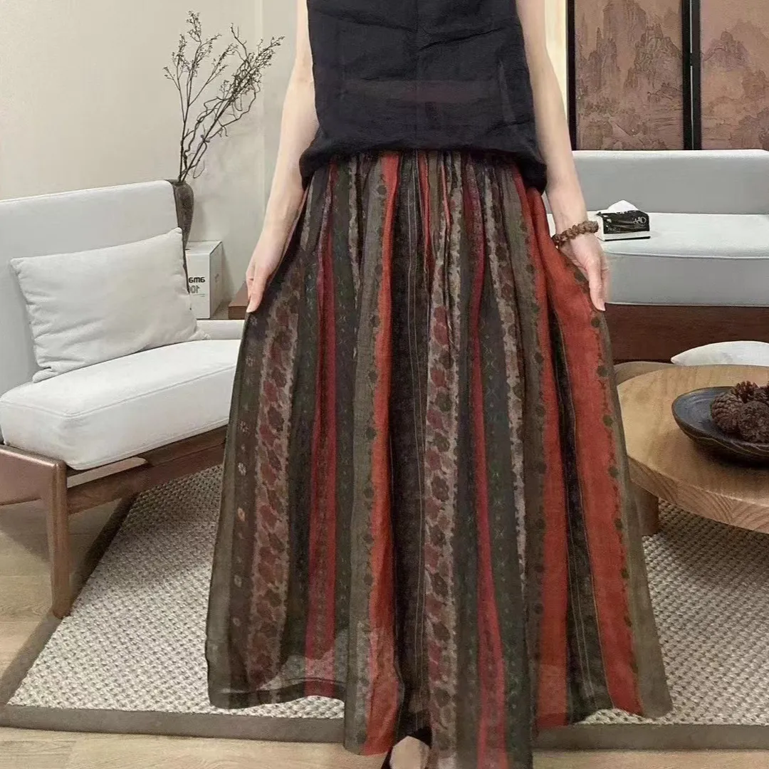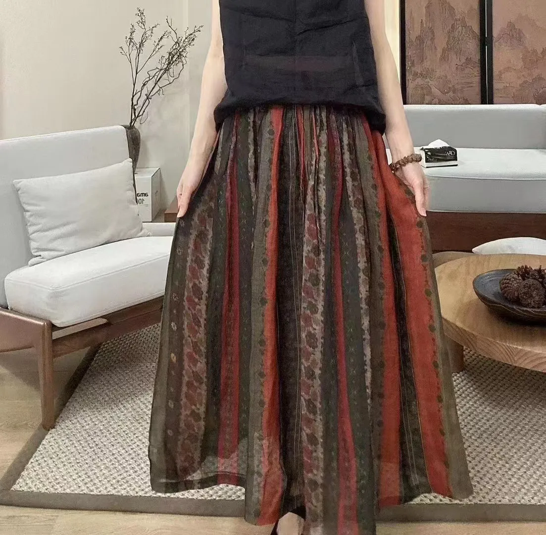 衣都精品- 新款寬鬆百搭舒適透氣中長款印花半身裙