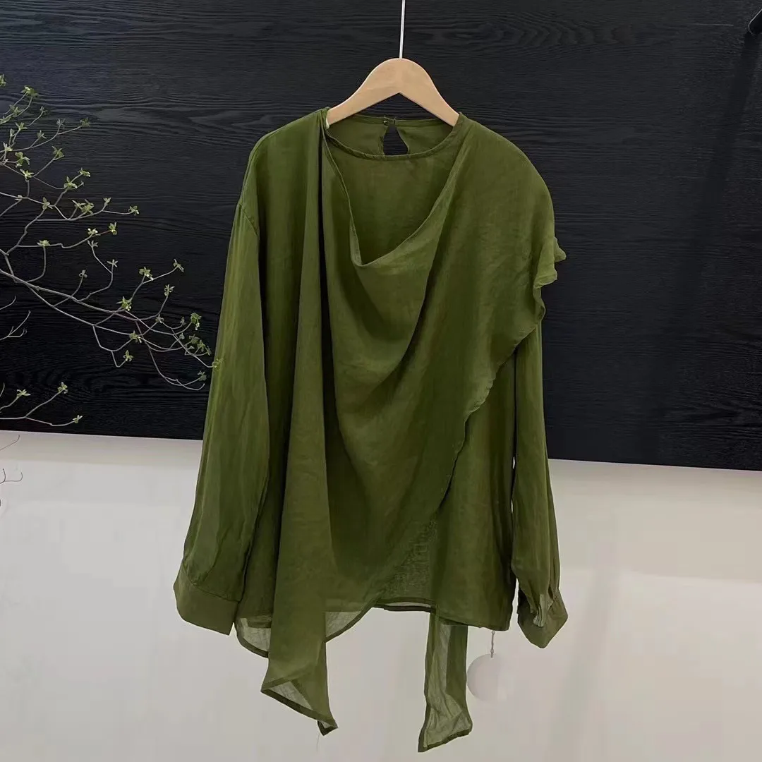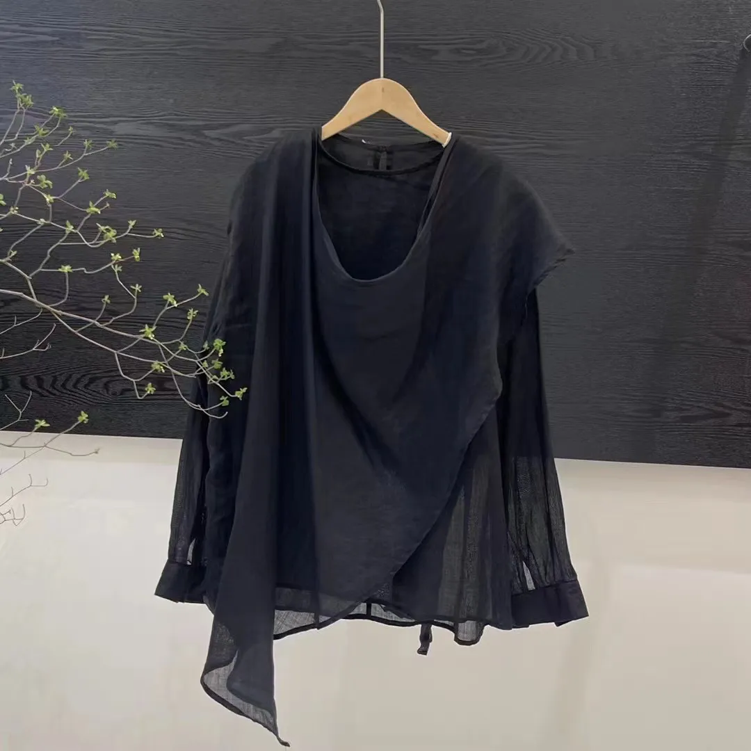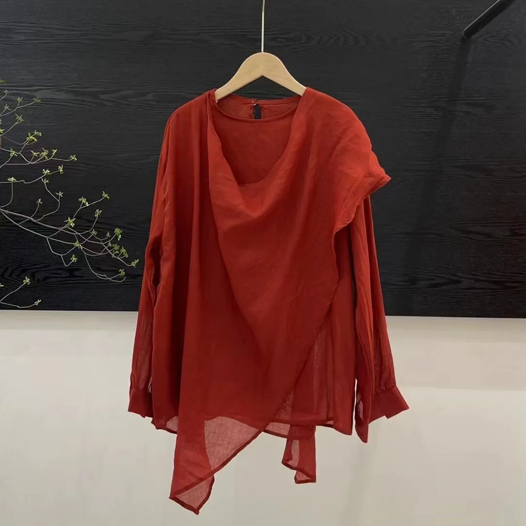 衣都精品- 新款兩穿飄帶薄版禪意復古文藝上衣