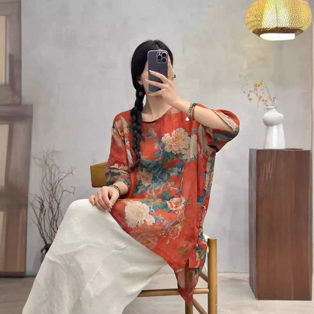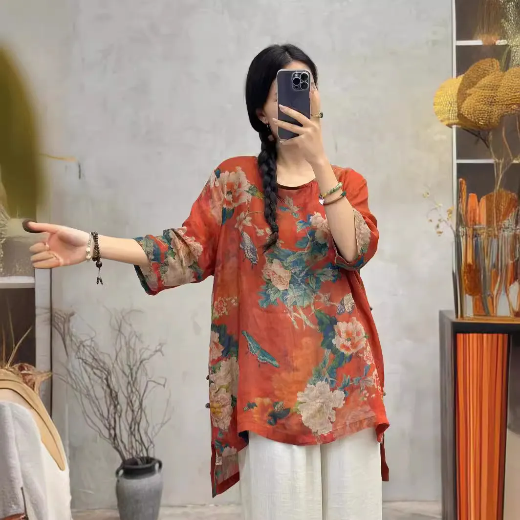 衣都精品- 新款兩穿飄帶薄版禪意復古文藝上衣