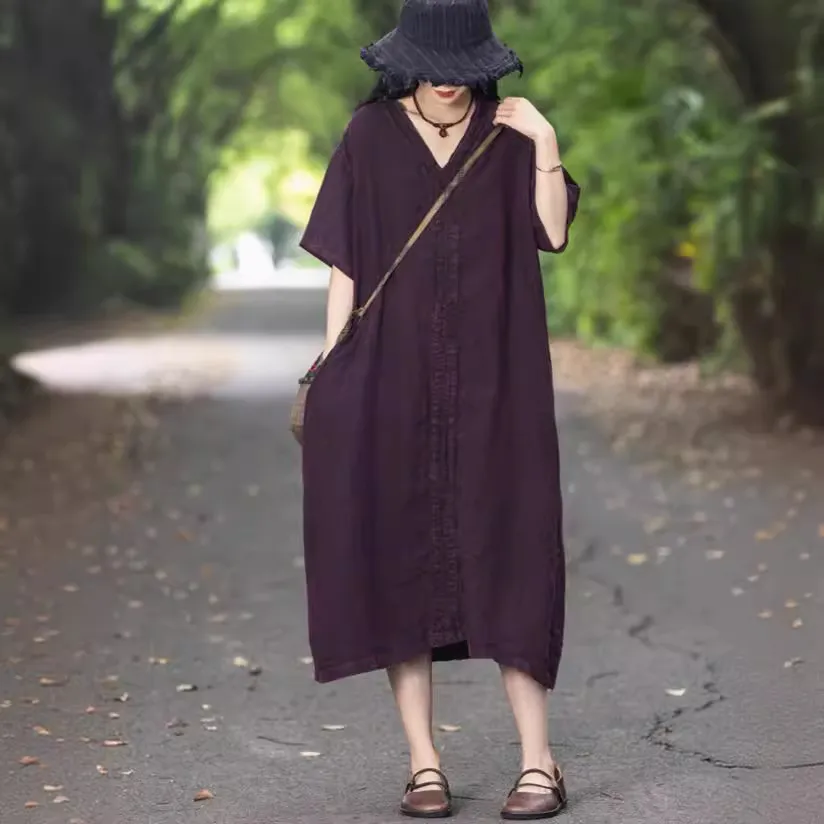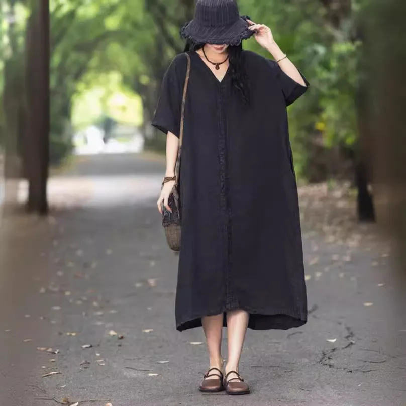 衣都精品- 新款復古寬鬆大碼盤扣禪意連衣裙