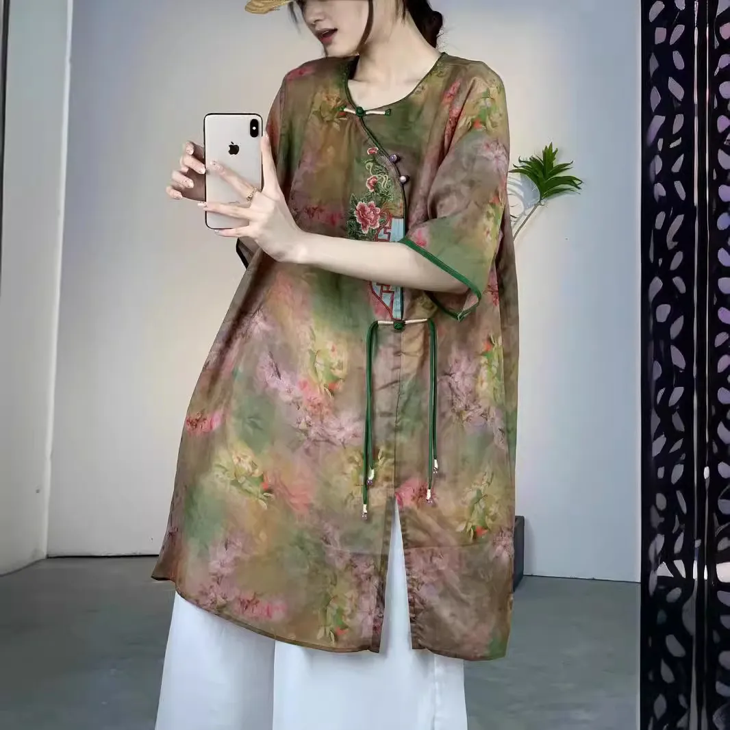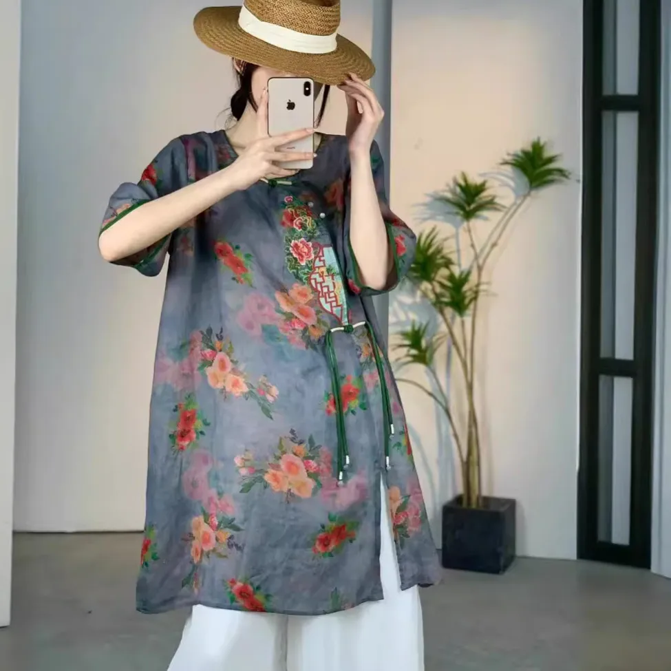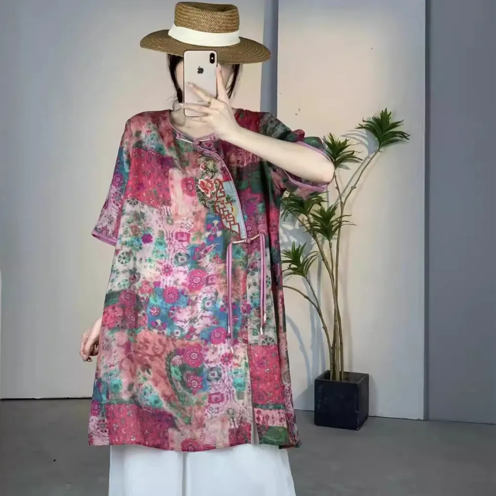 衣都精品- 新款寬鬆大碼薄款文藝復古碎花上衣