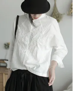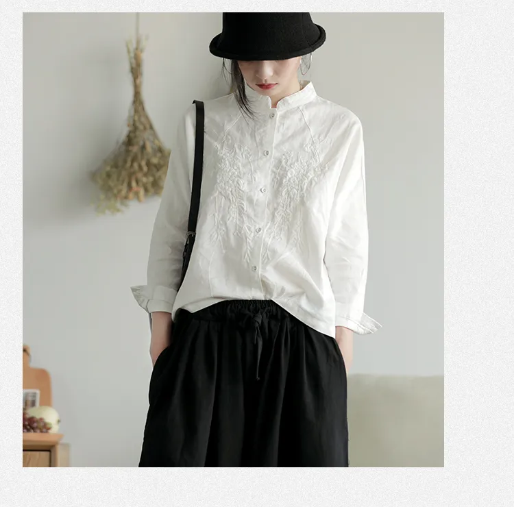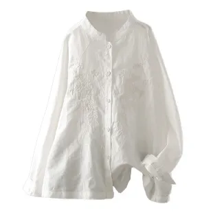 衣都精品- 新款復古立領寬鬆立體繡花刺繡上衣