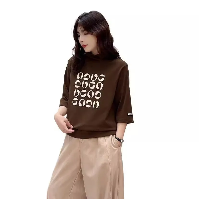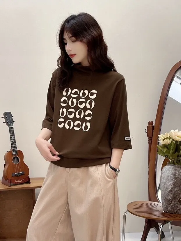 衣都精品- 新款文藝半高領休閒寬鬆簡約上衣