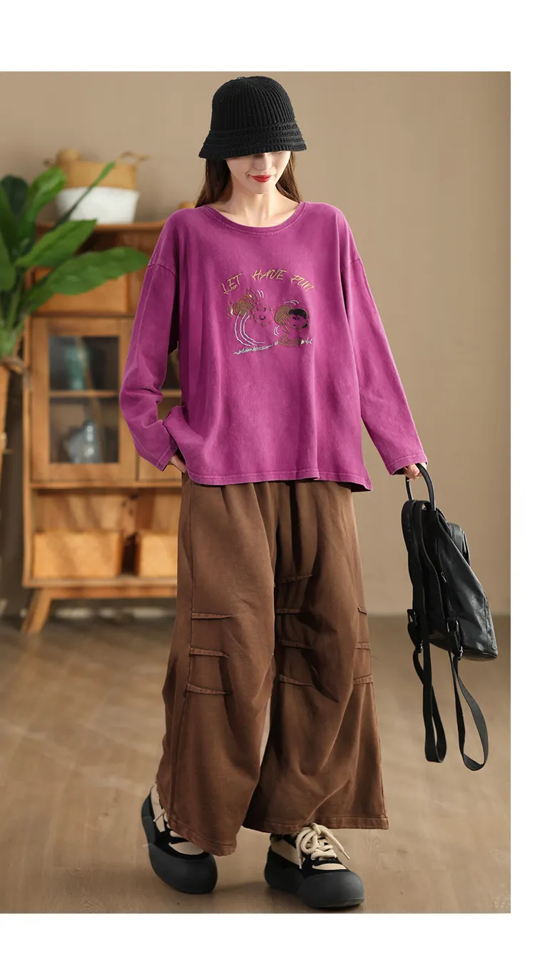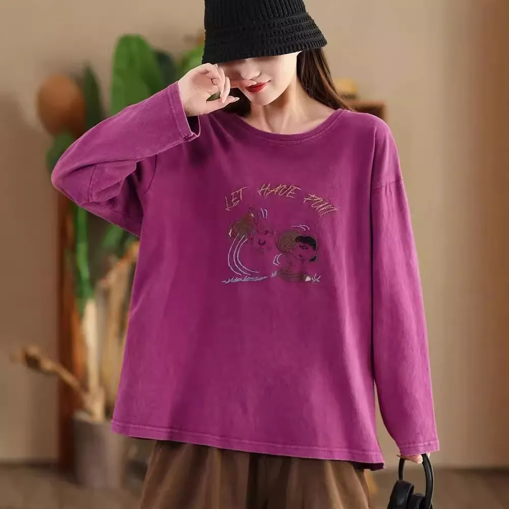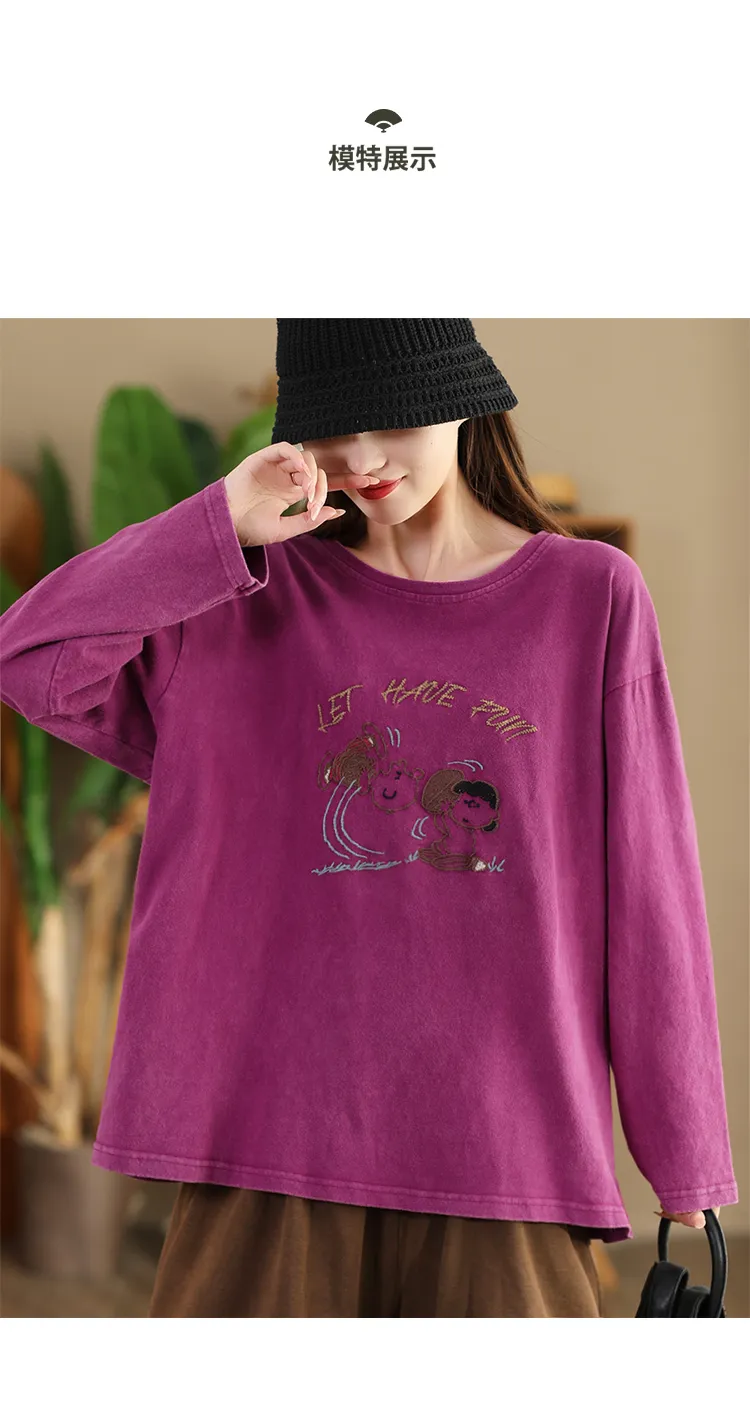 衣都精品- 新款復古炒色針織棉立體刺繡上衣