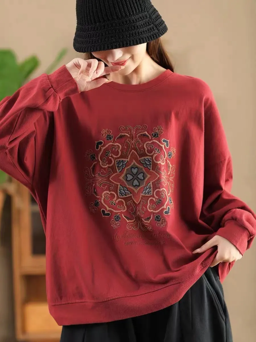 衣都精品- 新款復古炒色針織棉立體刺繡上衣
