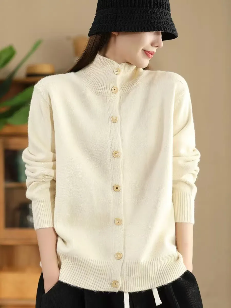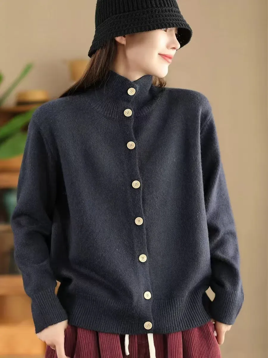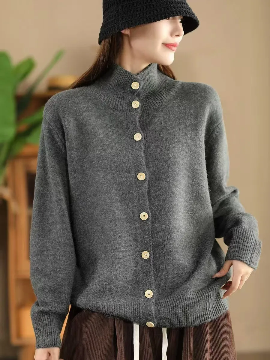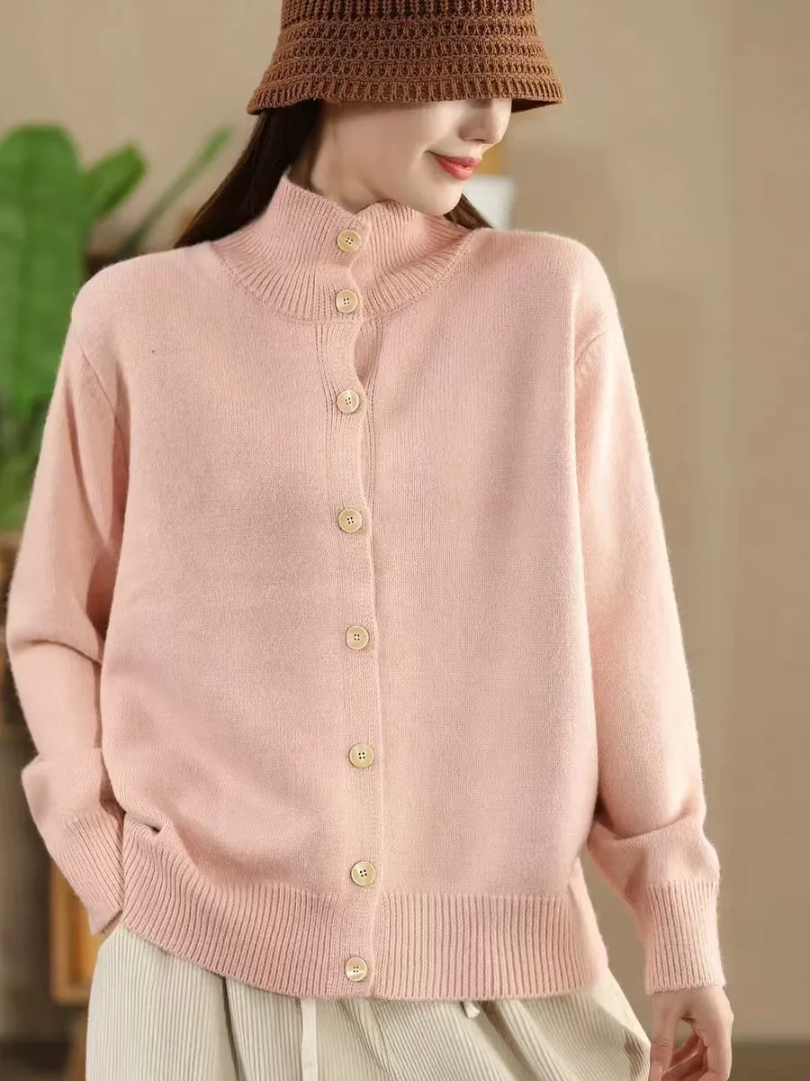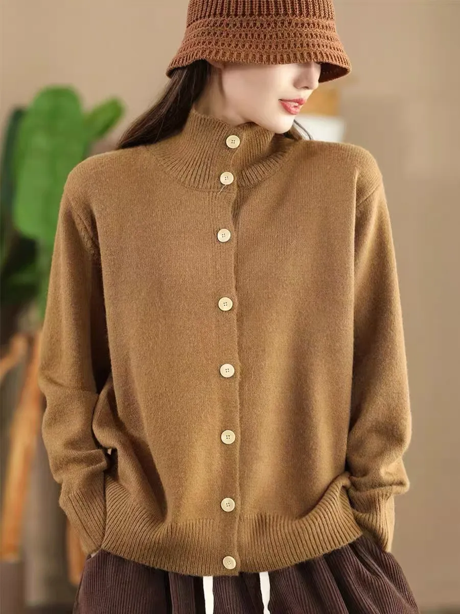 衣都精品- 新款時尚高領/翻領兩穿單排扣軟糯針織衫