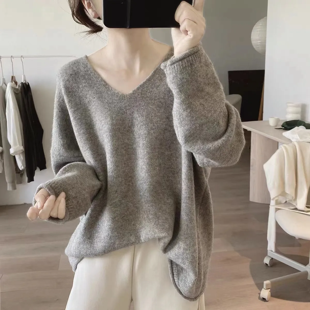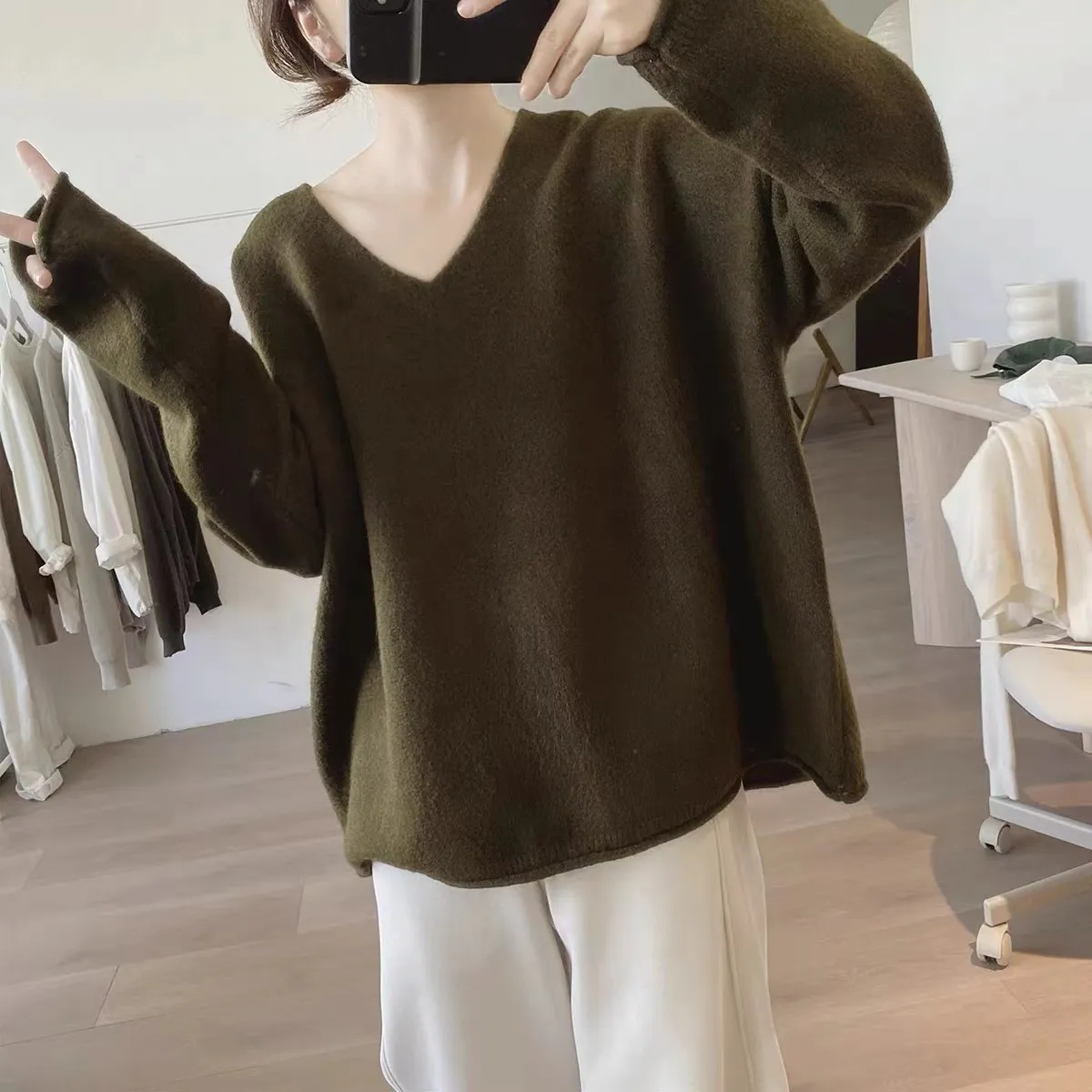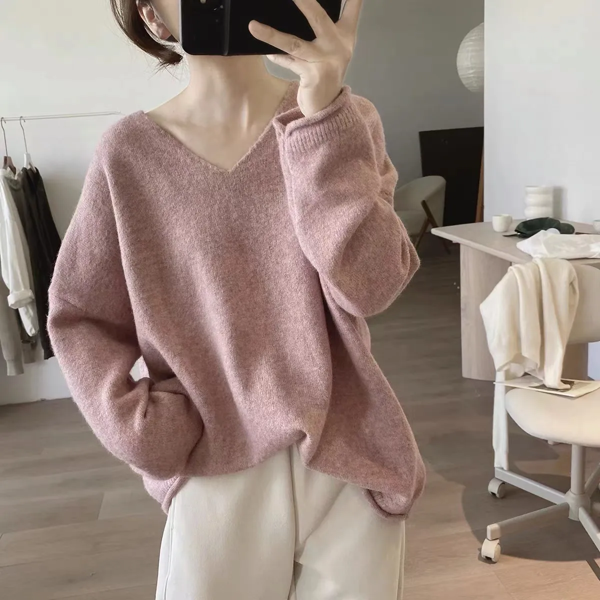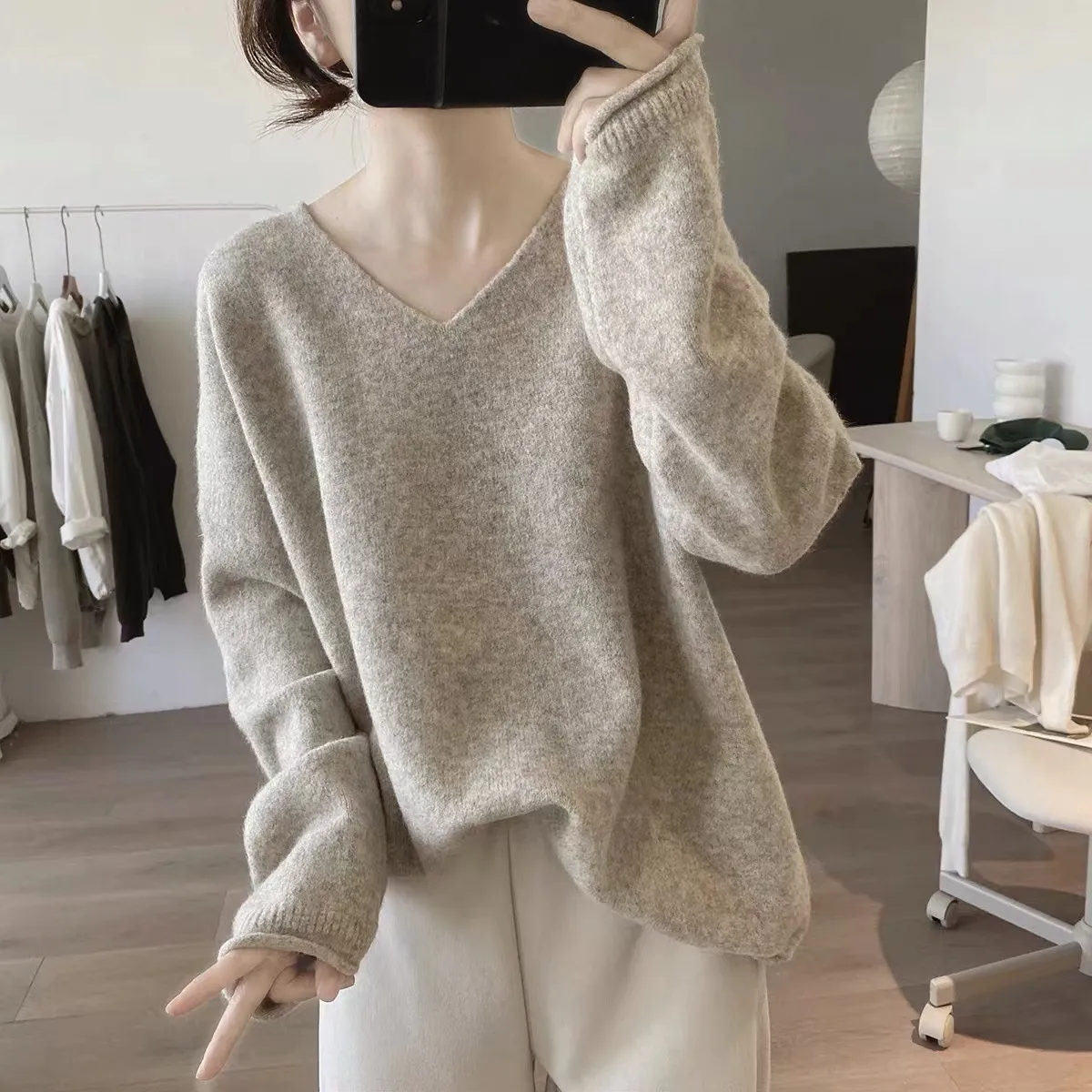 衣都精品- 新款韓版寬鬆顯瘦簡約V領毛衣
