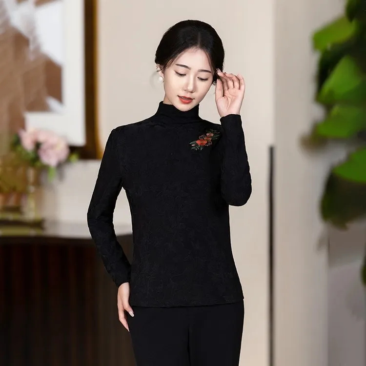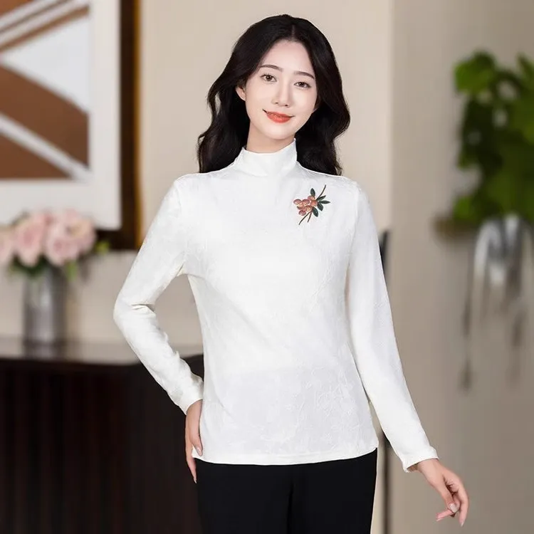 衣都精品- 新款時尚洋氣暗紋提花刺繡打底衫