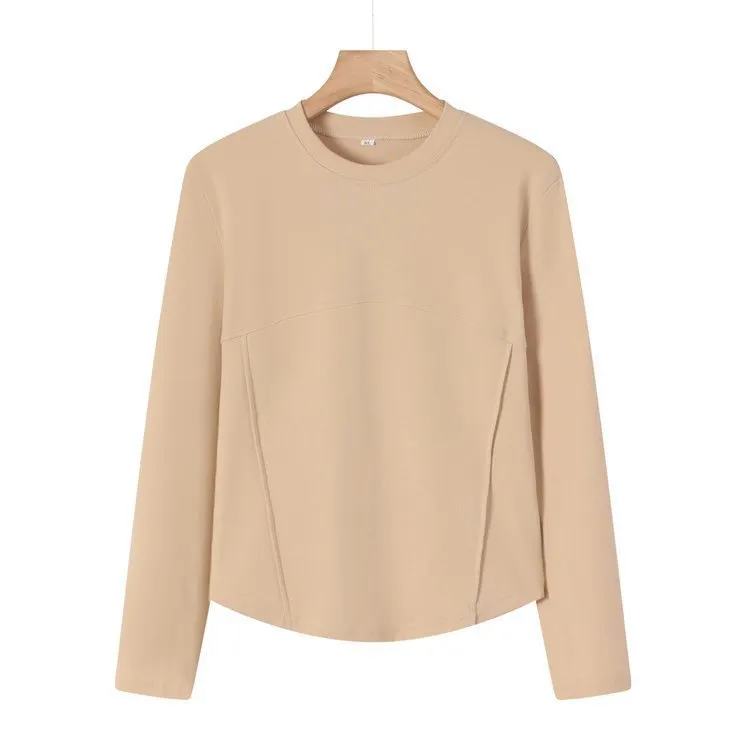 衣都精品- 新款正肩圓領長袖魚骨線收腰上衣