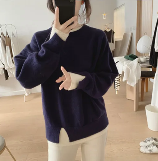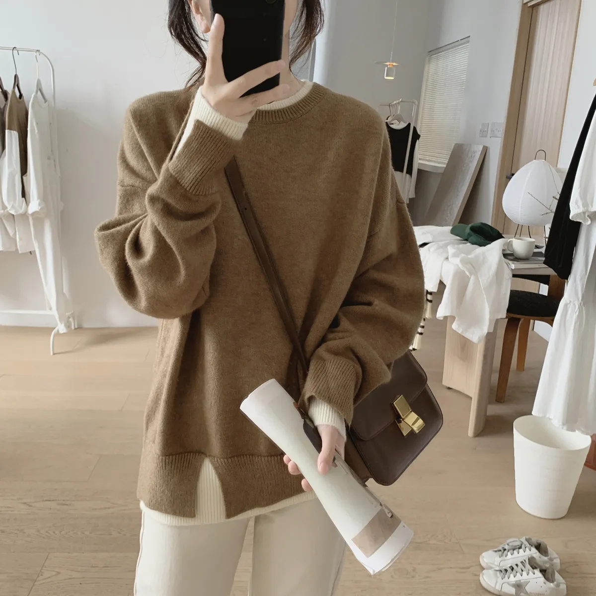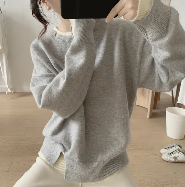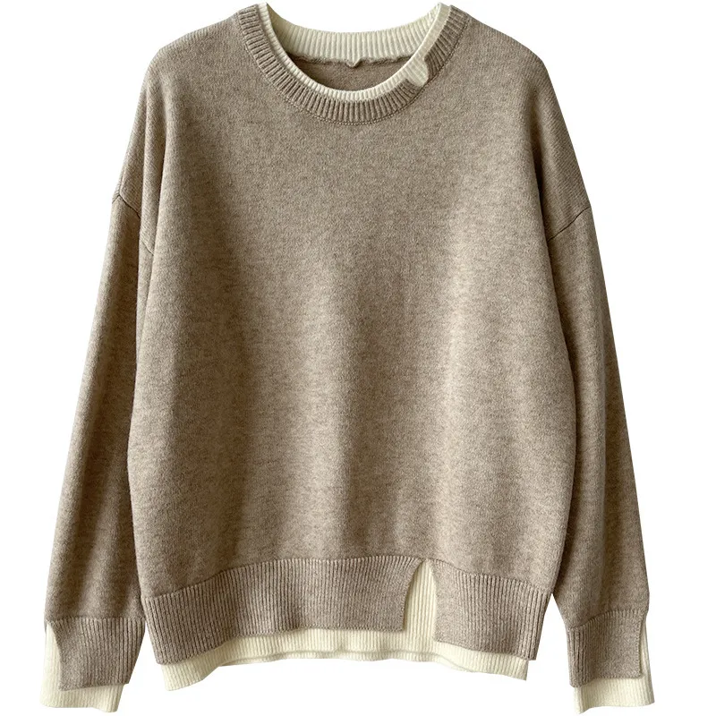 衣都精品- 新款寬鬆顯瘦假兩件圓領針織衫外套