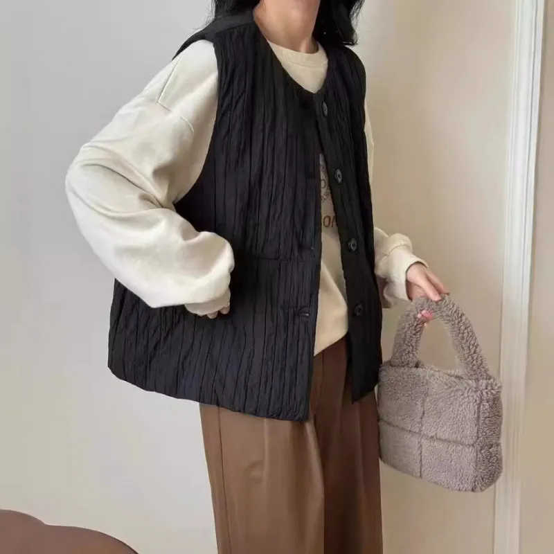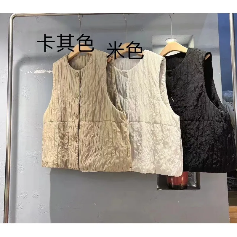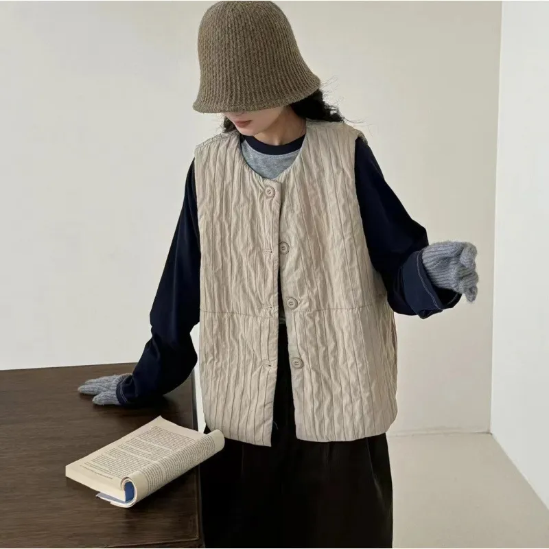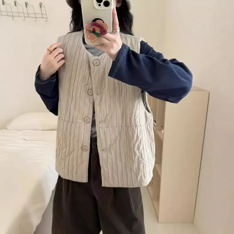 衣都精品- 新款寬鬆夾棉絎線圓領開衫馬甲外套