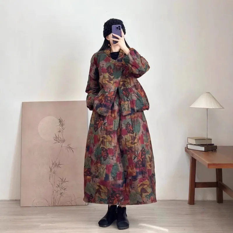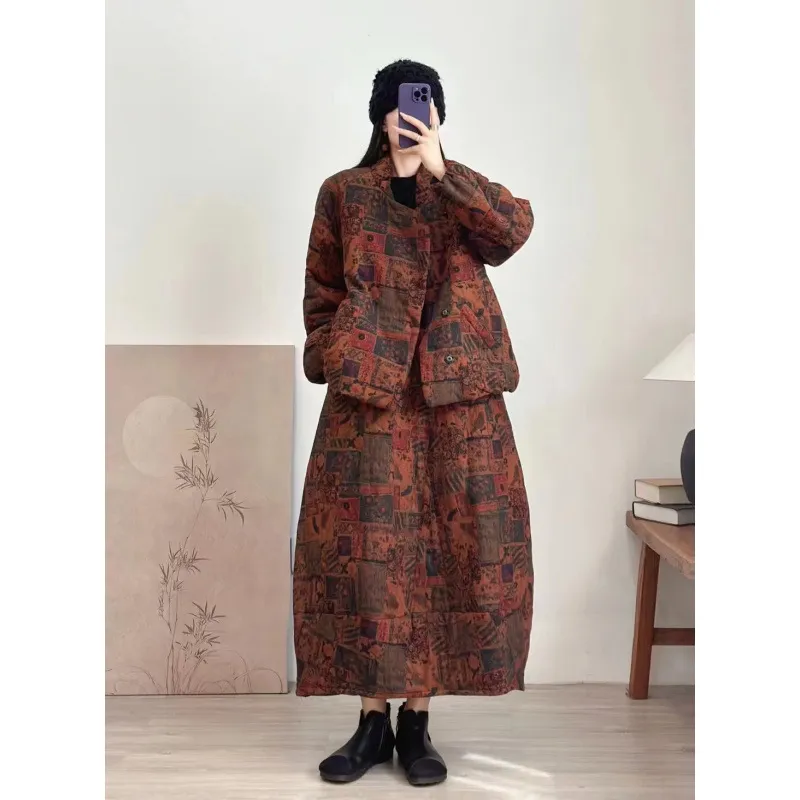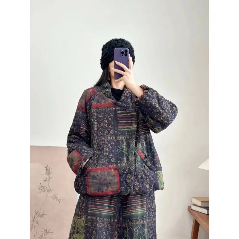 衣都精品- 新款寬鬆大碼夾棉加厚保暖印花外套