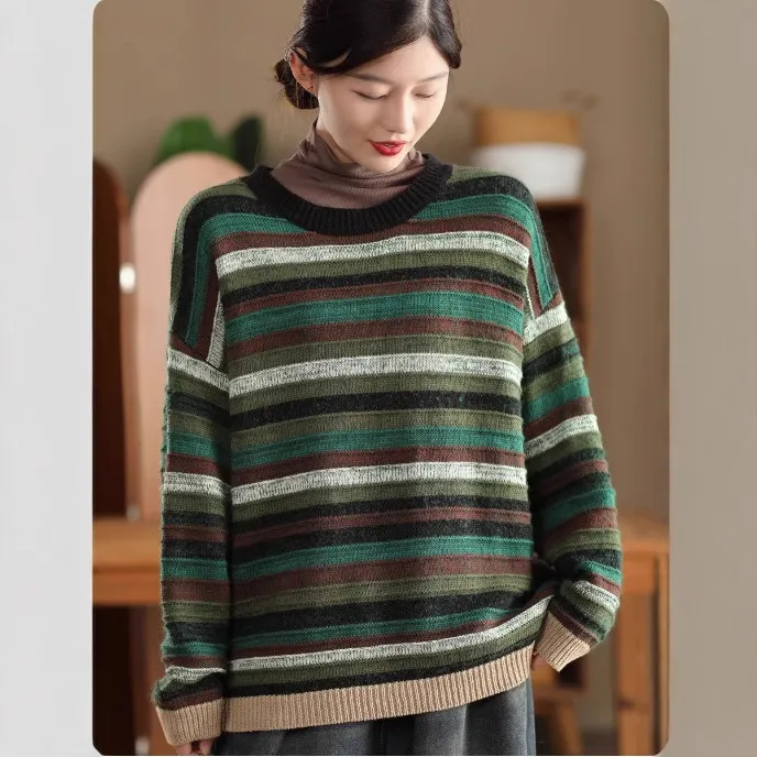 衣都精品- 新款圓領套頭衫氣質寬鬆長袖毛衣