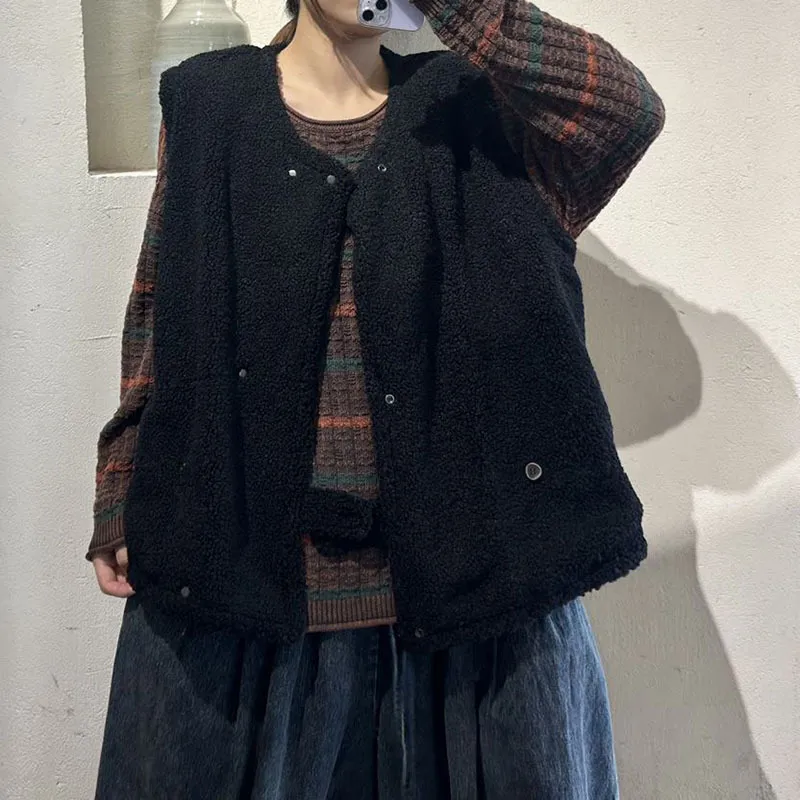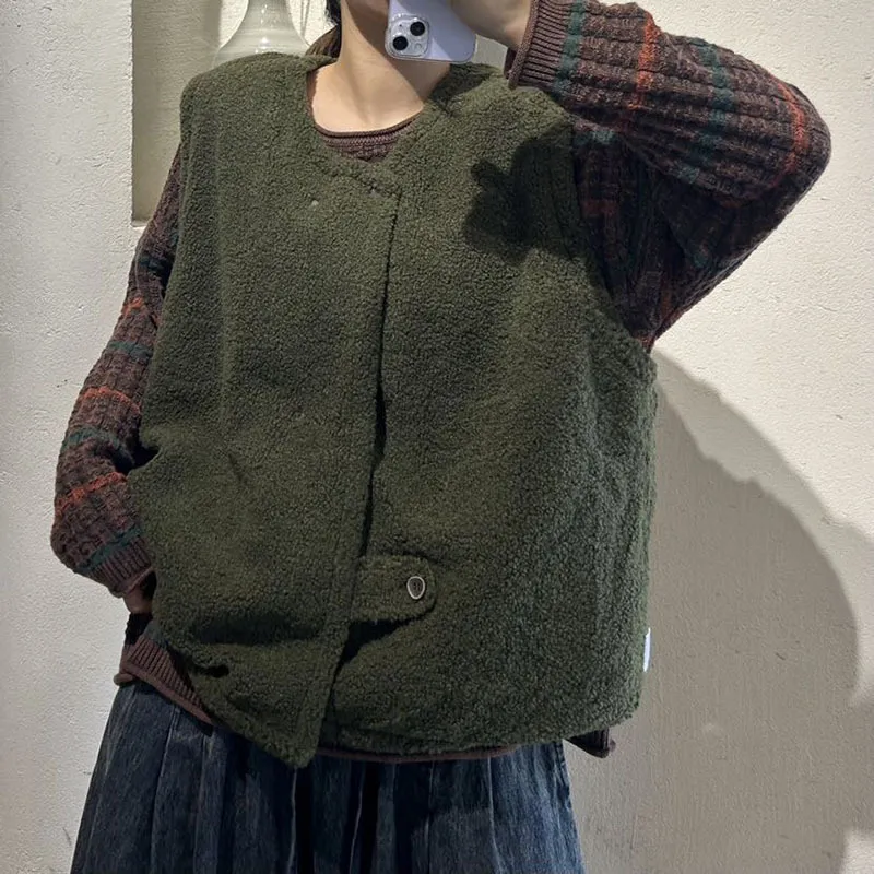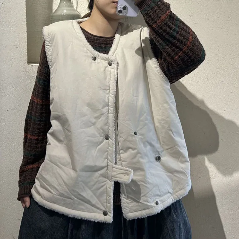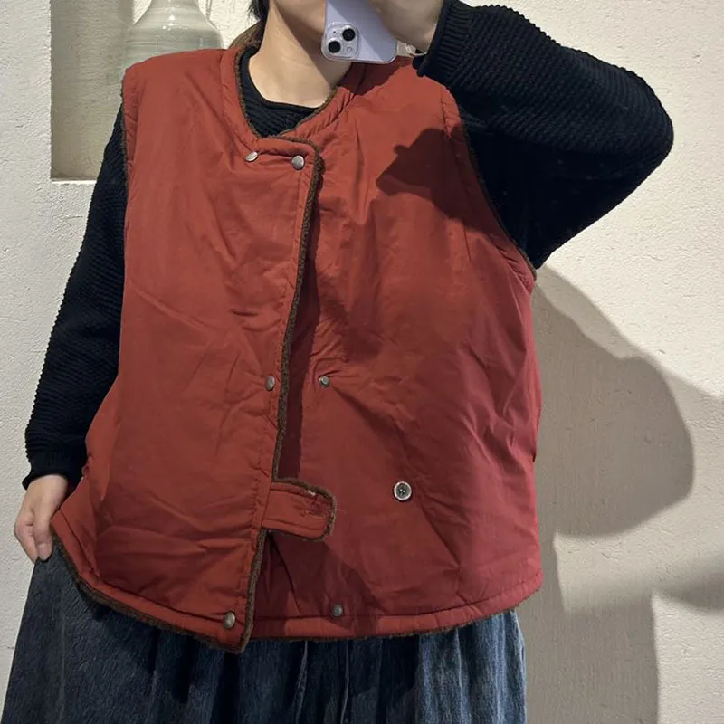 衣都精品- 新款復古圓領拼接兩面穿夾棉馬甲外套