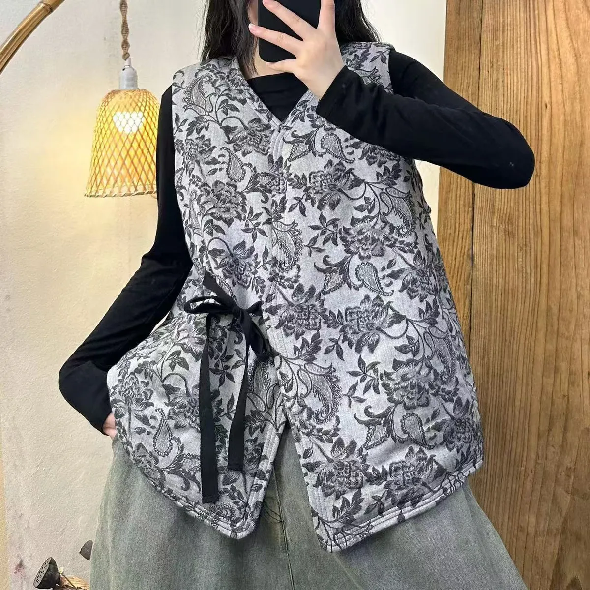 衣都精品- 新款百搭新中國風暗扣斜襟提花夾棉馬甲外套