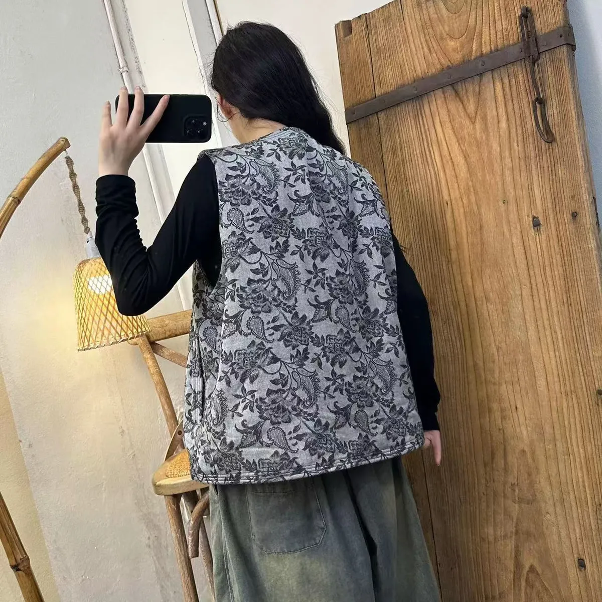 衣都精品- 新款復古圓領拼接兩面穿夾棉馬甲外套