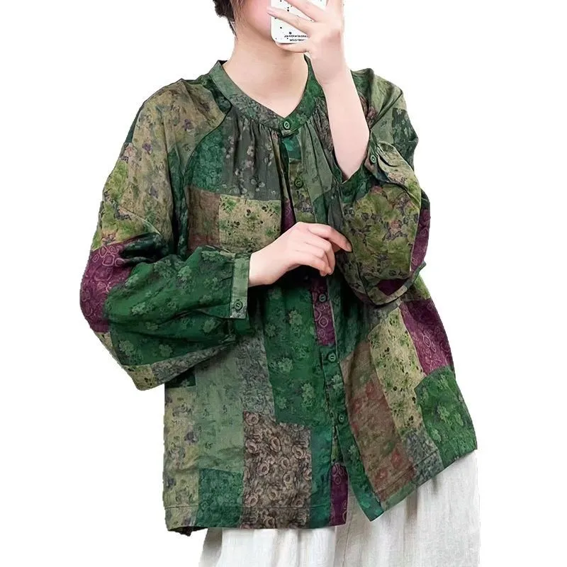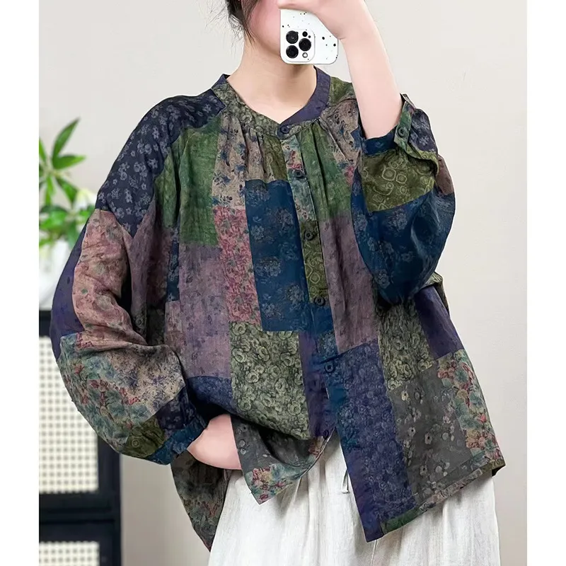 衣都精品- 新款立領單排扣復古數碼印花上衣
