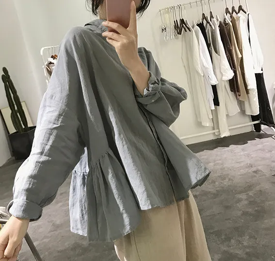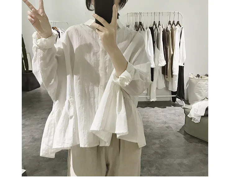 衣都精品- 新款立領單排扣寬鬆顯瘦棉麻數碼印花上衣