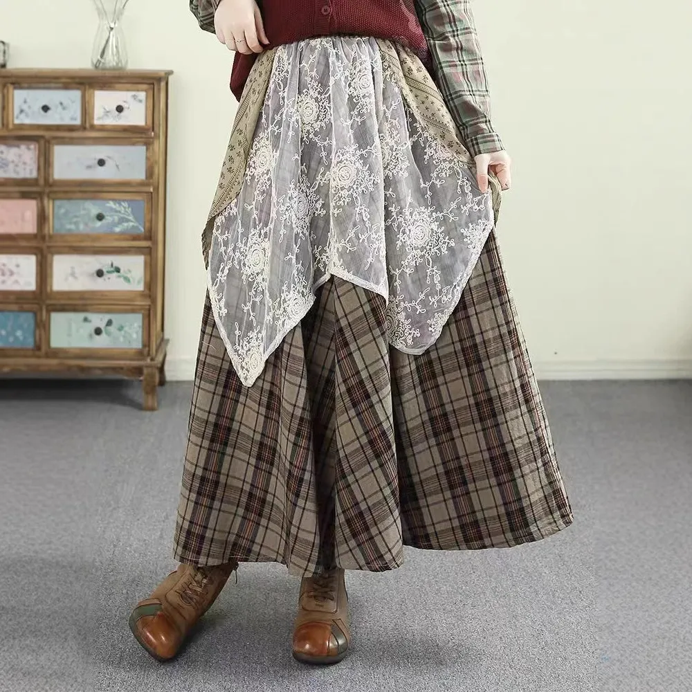 衣都精品- 新款文藝休閒不規則拼接蕾絲半身裙
