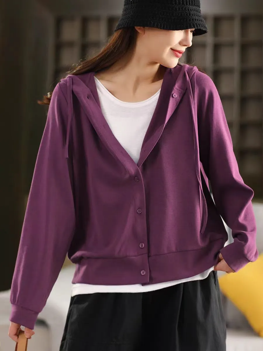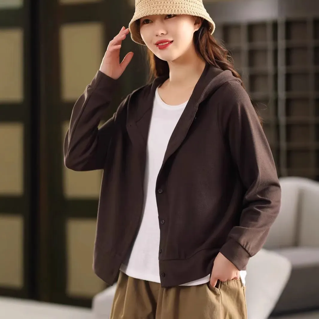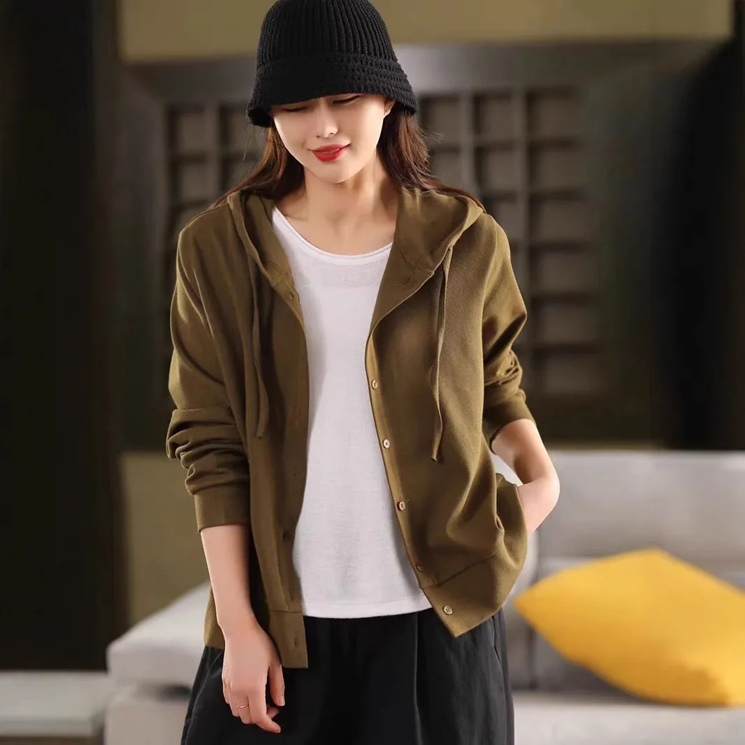 衣都精品- 新款開衫純色外搭針織連帽衛衣外套