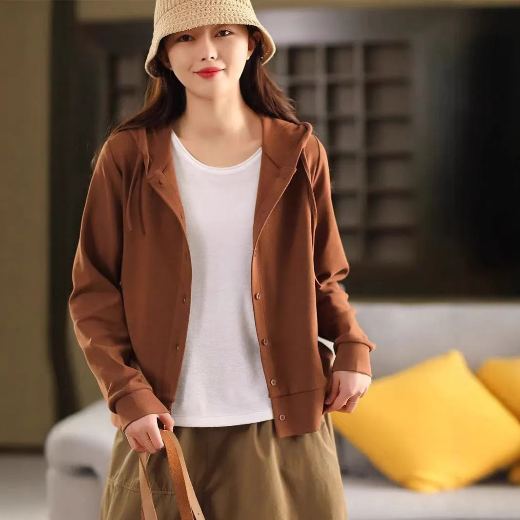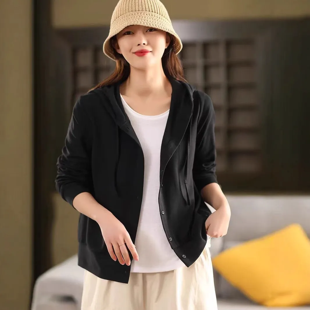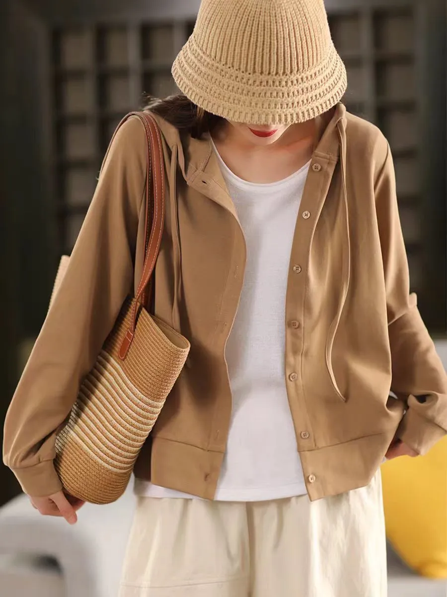 衣都精品- 新款開衫純色外搭針織連帽衛衣外套