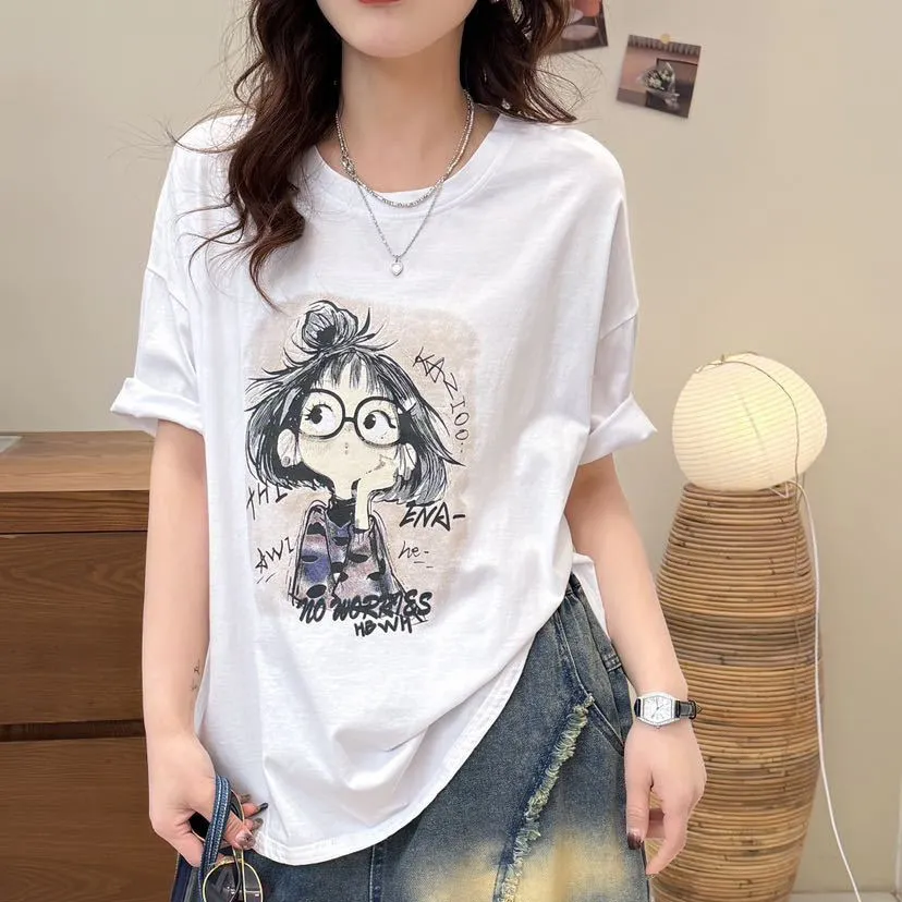 衣都精品- 新款圓領純色卡通人物印花短袖上衣
