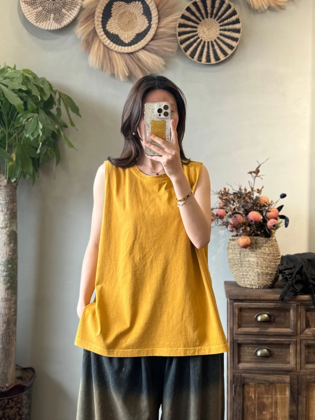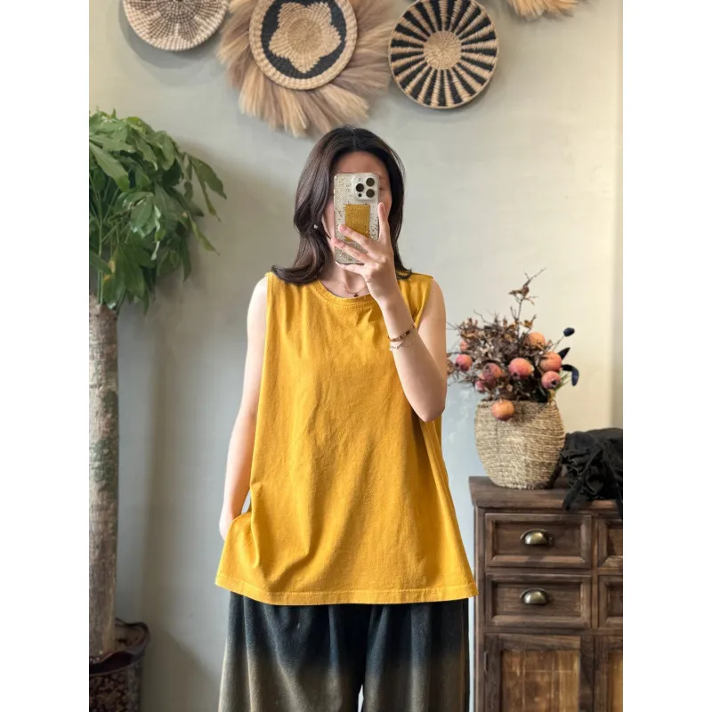 衣都精品- 新款復古純色寬鬆遮肉大碼背心上衣