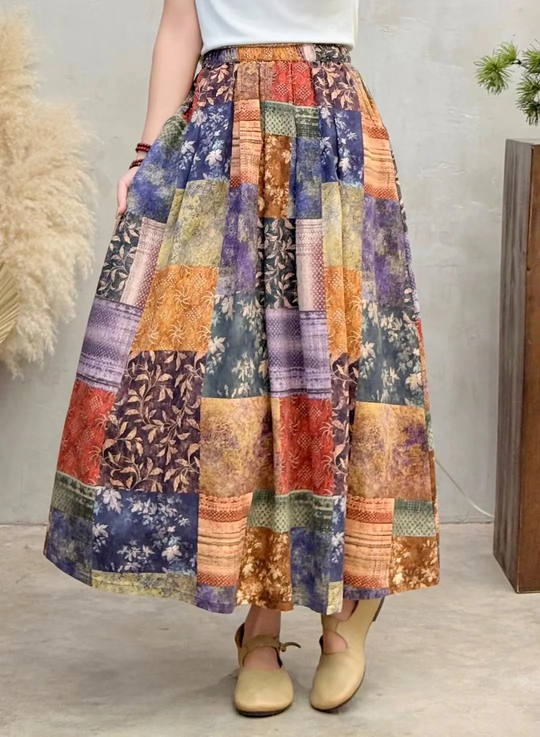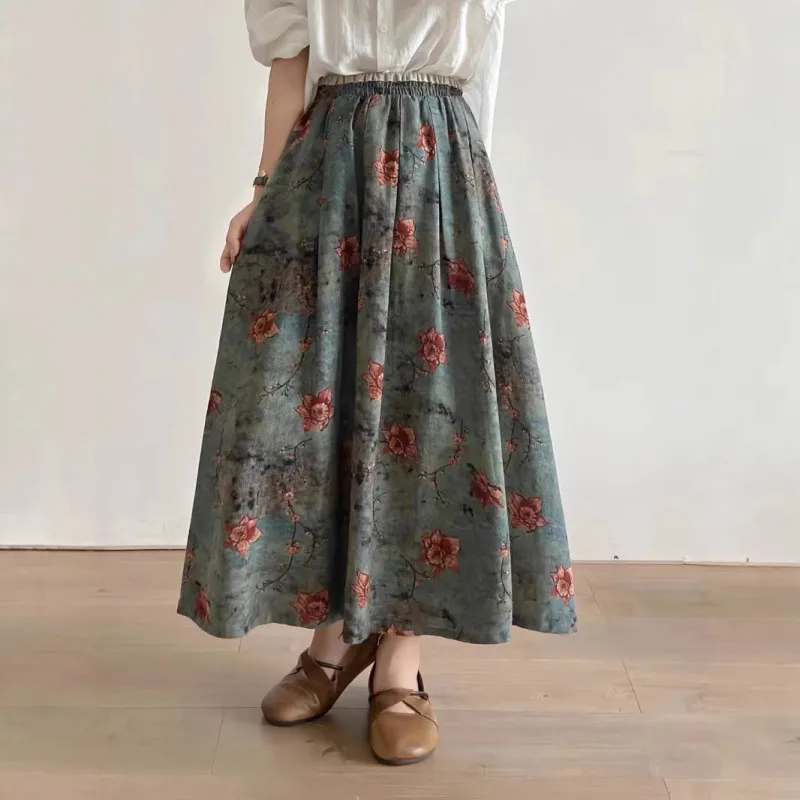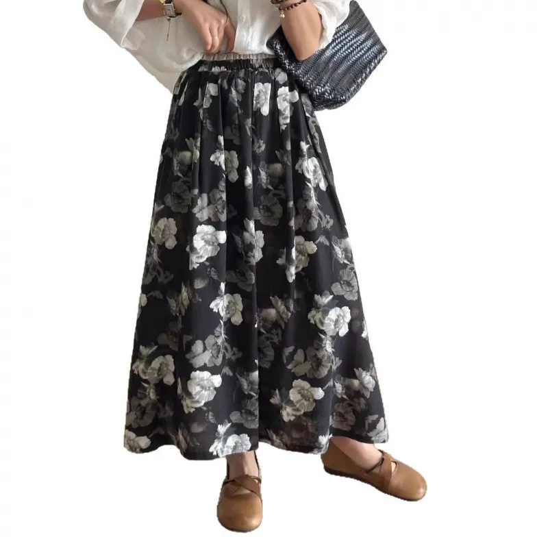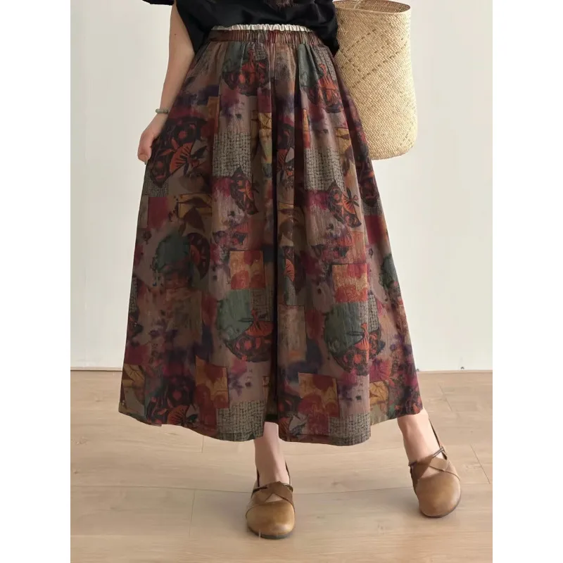衣都精品- 新款大碼顯瘦鬆緊腰印花半身裙
