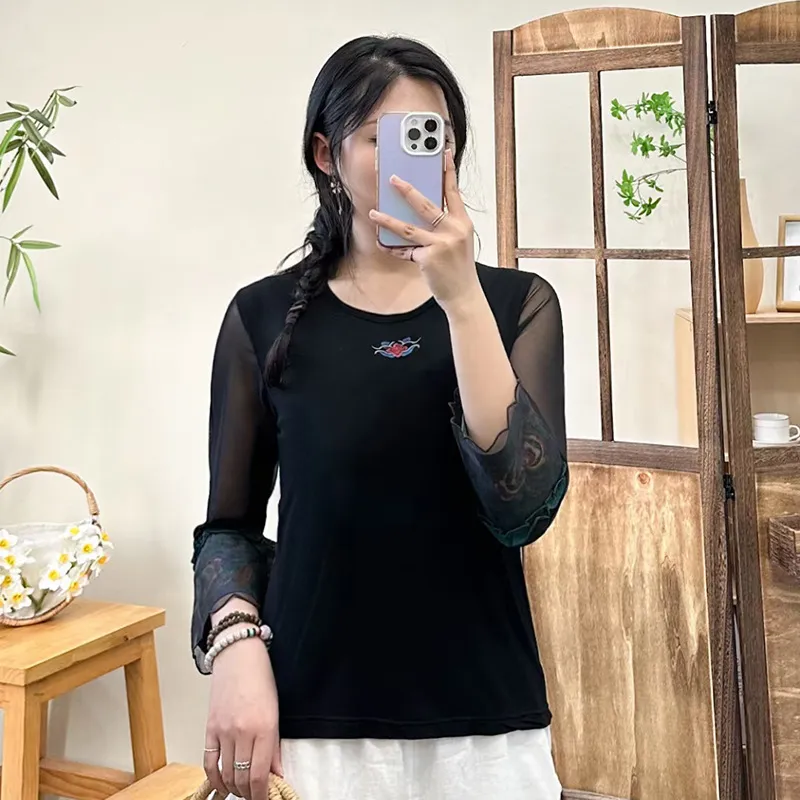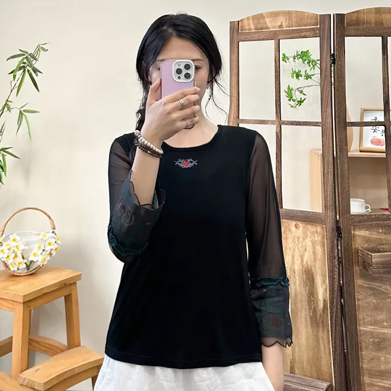 衣都精品- 新款立領套頭刺繡寬鬆顯瘦上衣