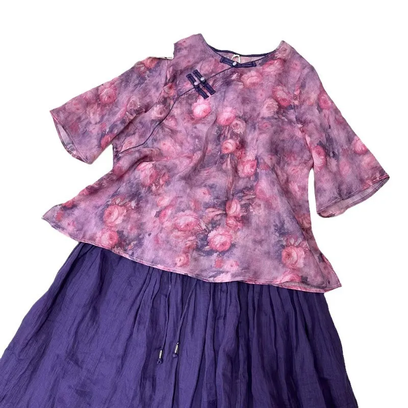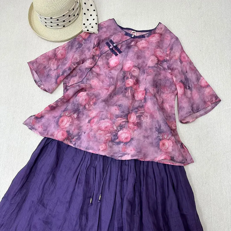 衣都精品- 新款刺繡立領復古盤扣潮流下擺上衣